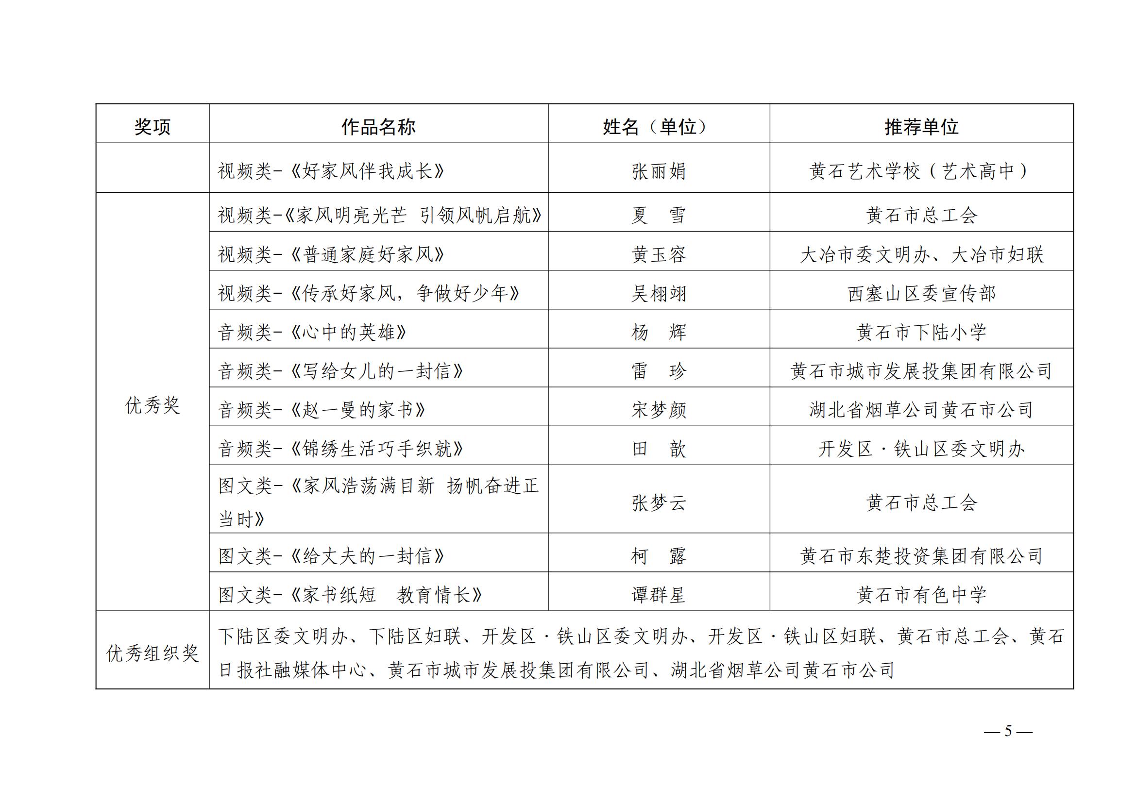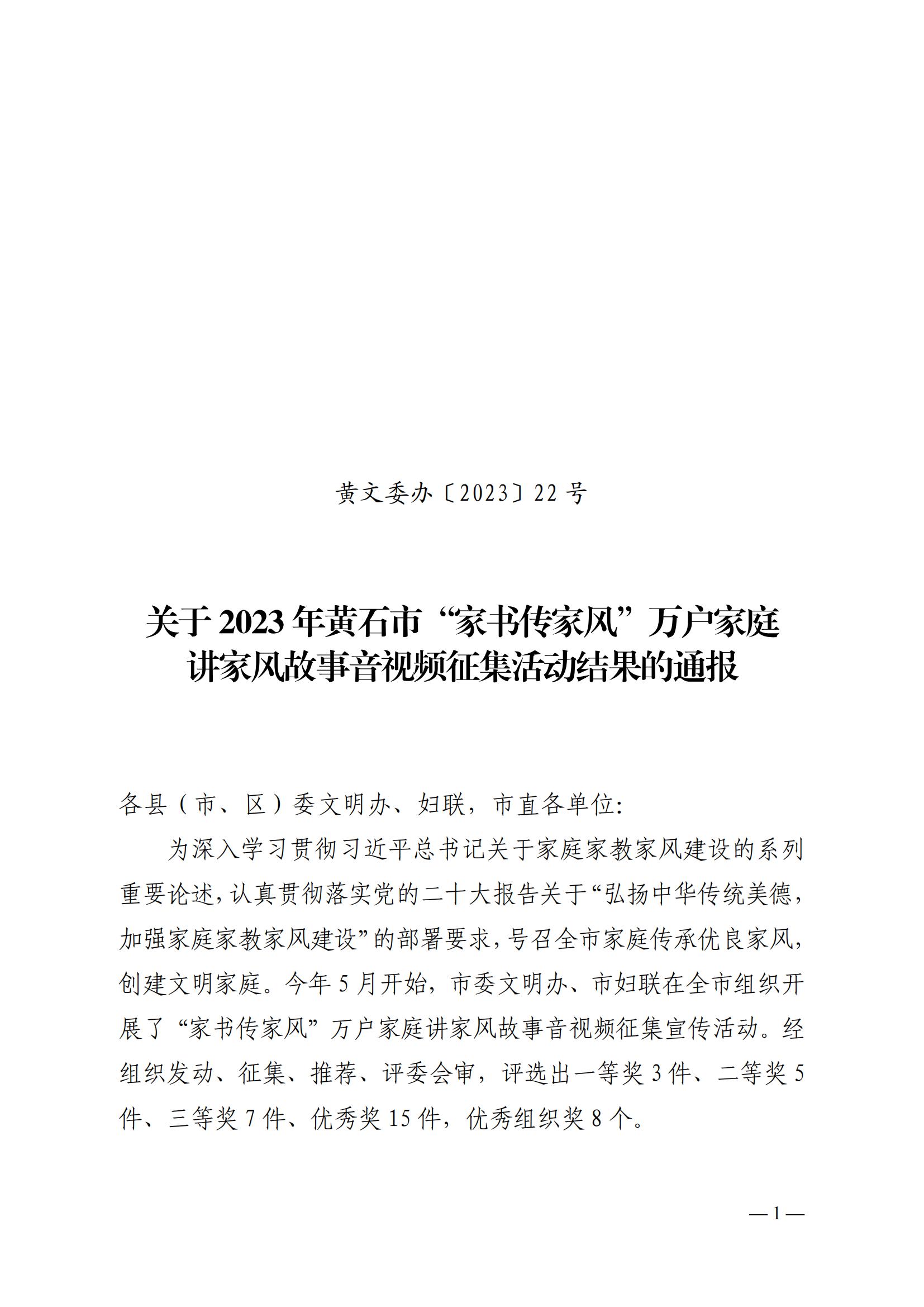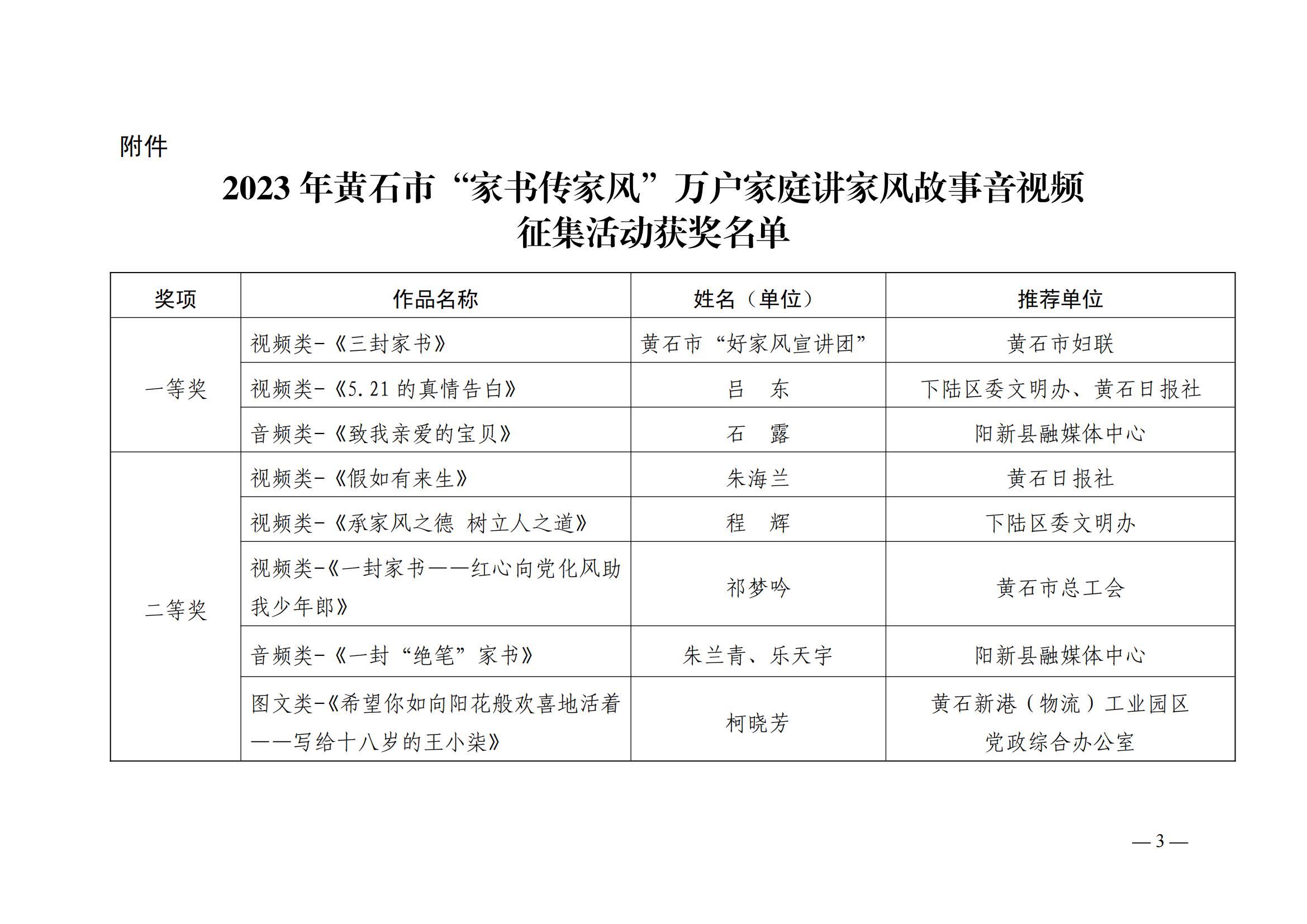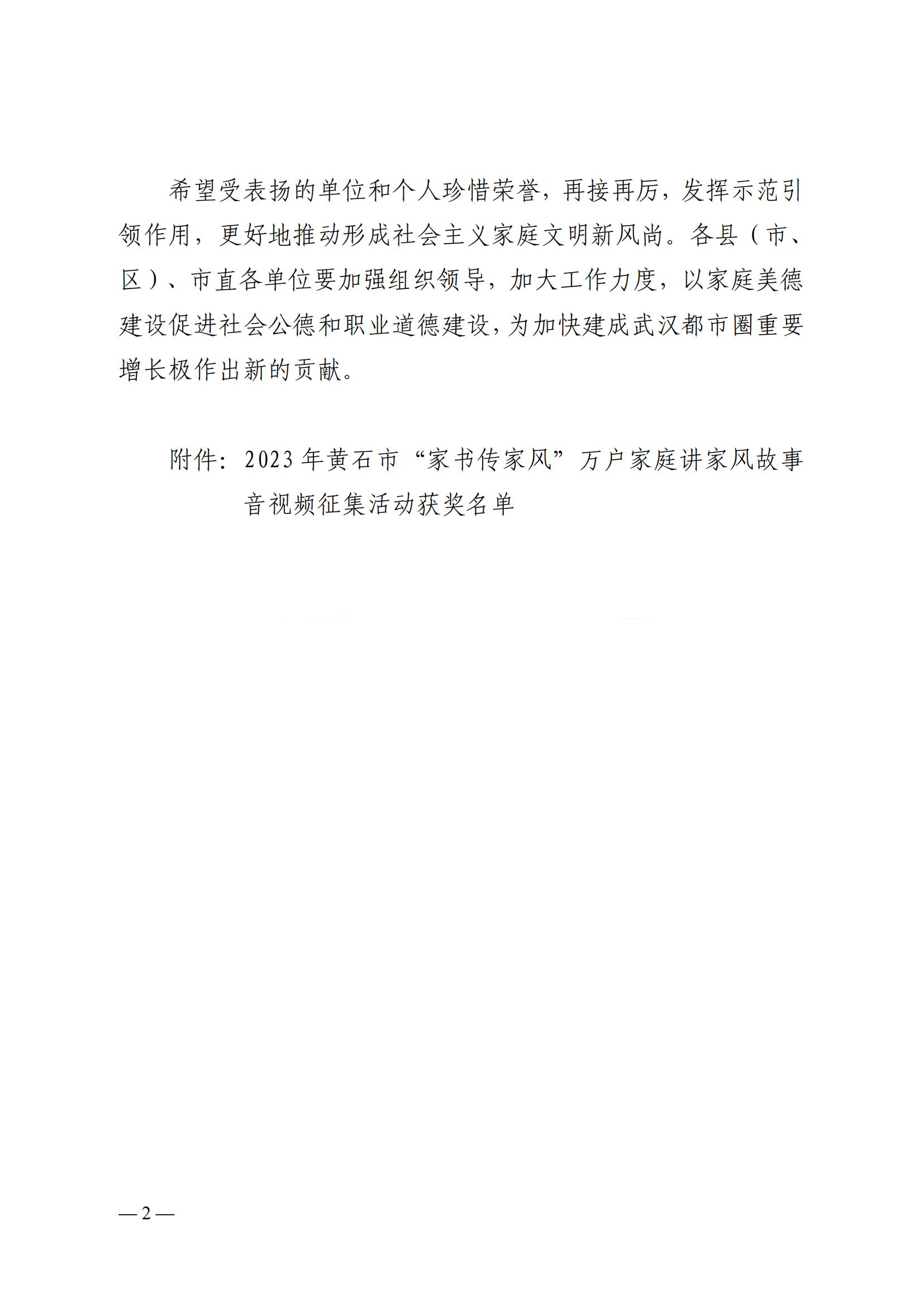 【结果公示】2023年黄石市 “家书传家风”万户家庭讲家风故事 音视频征集活动