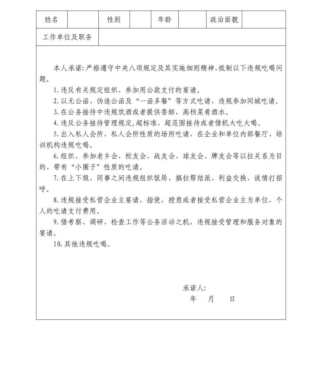 《湖北省领导干部抵制违规吃喝问题承诺书》