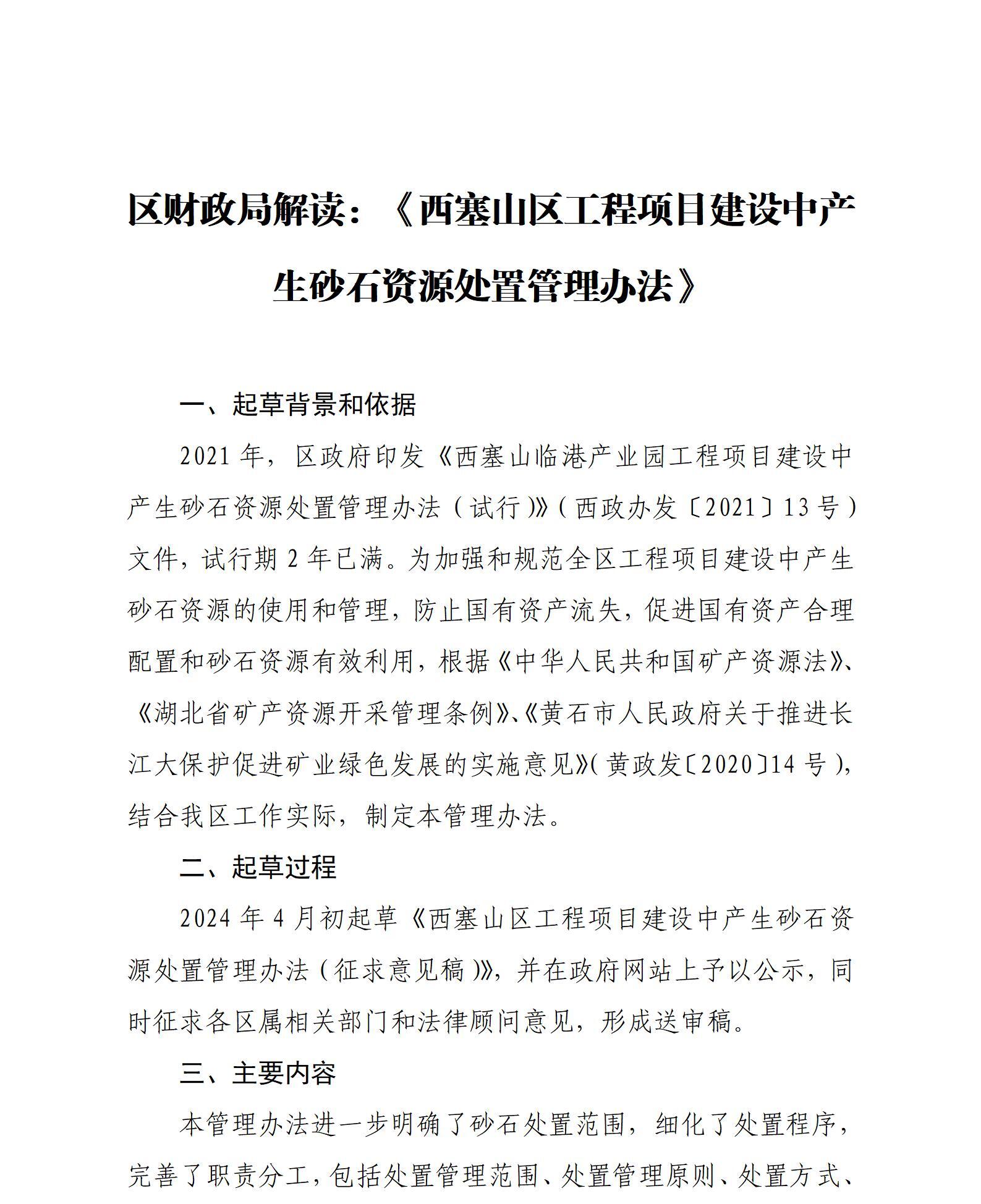 区财政局解读:《西塞山区工程项目建设中产生砂石资源处置管理办法》