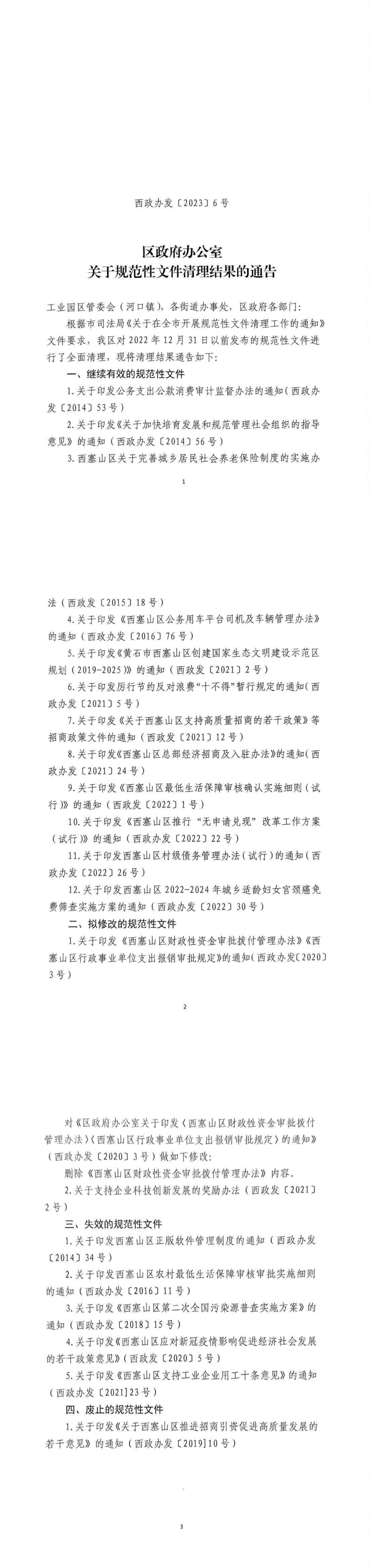 西塞山区人民政府办公室关于规范性文件清理结果的通告