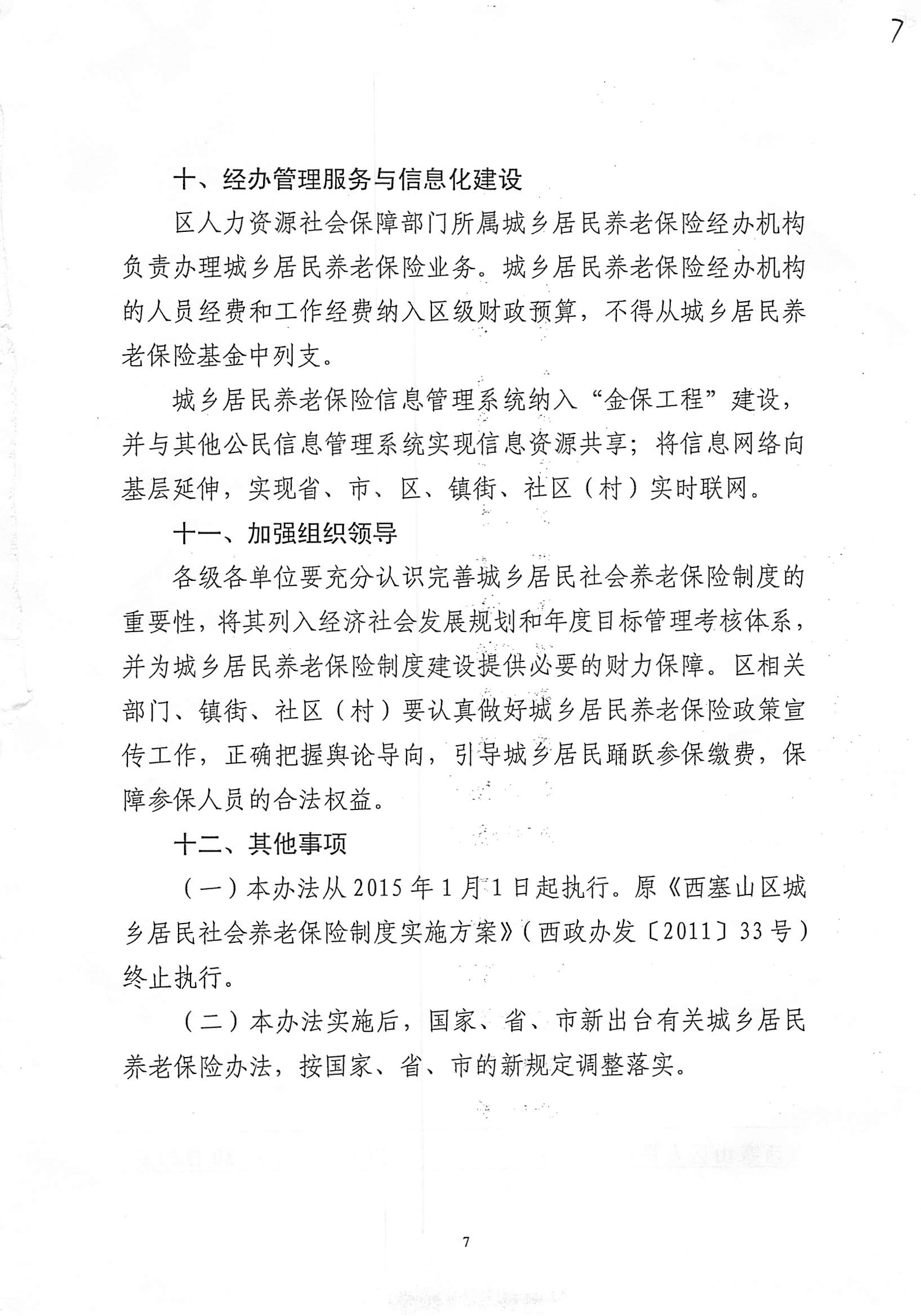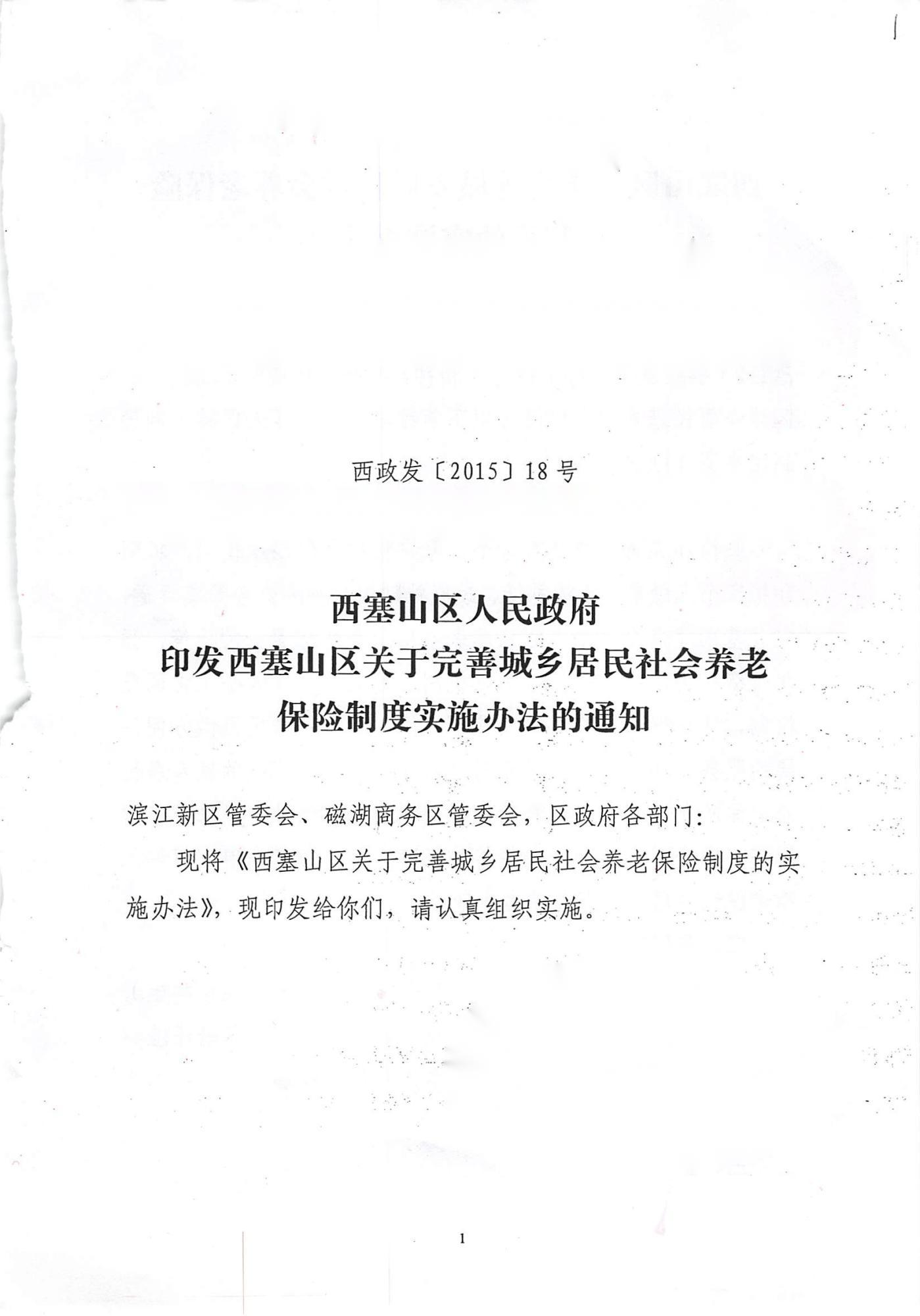 西塞山区人民政府印发西塞山区关于完善城乡居民社会养老保险制度实施办法的通知
