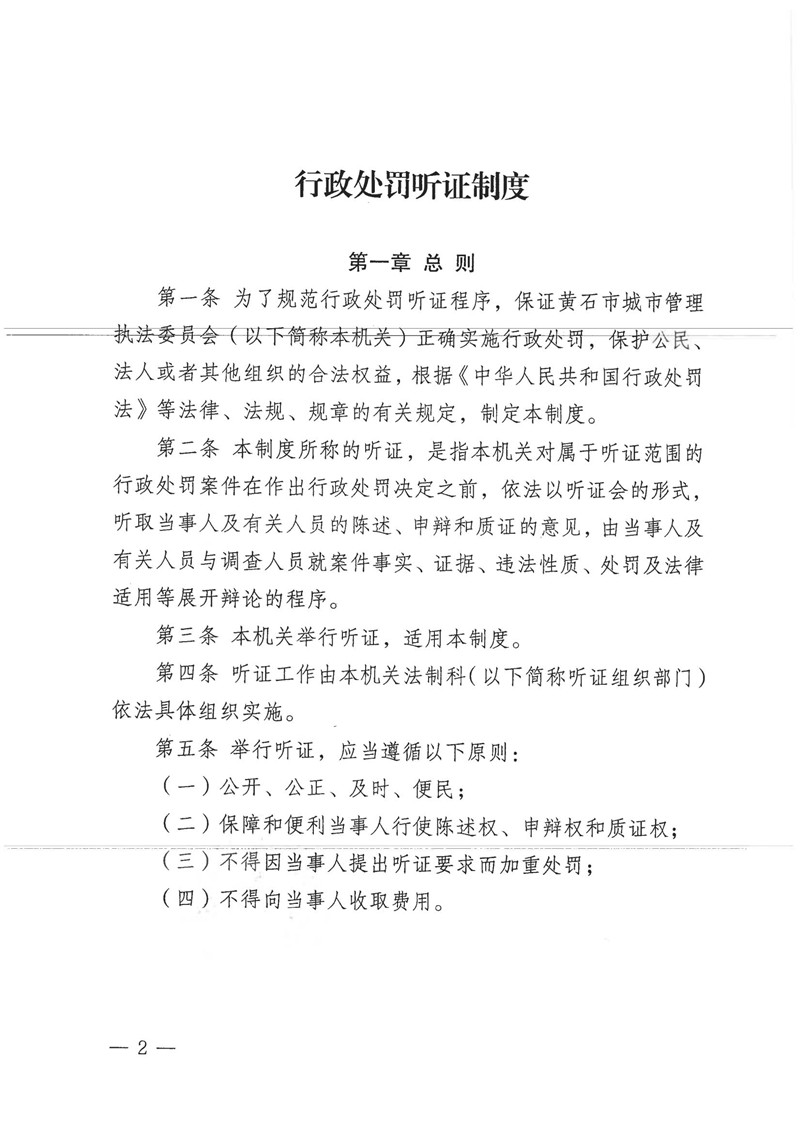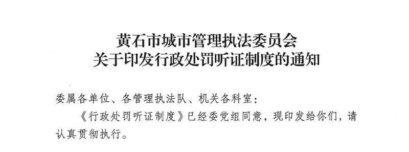 黄石市城市管理执法委员会关于印发行政处罚听证制度的通知