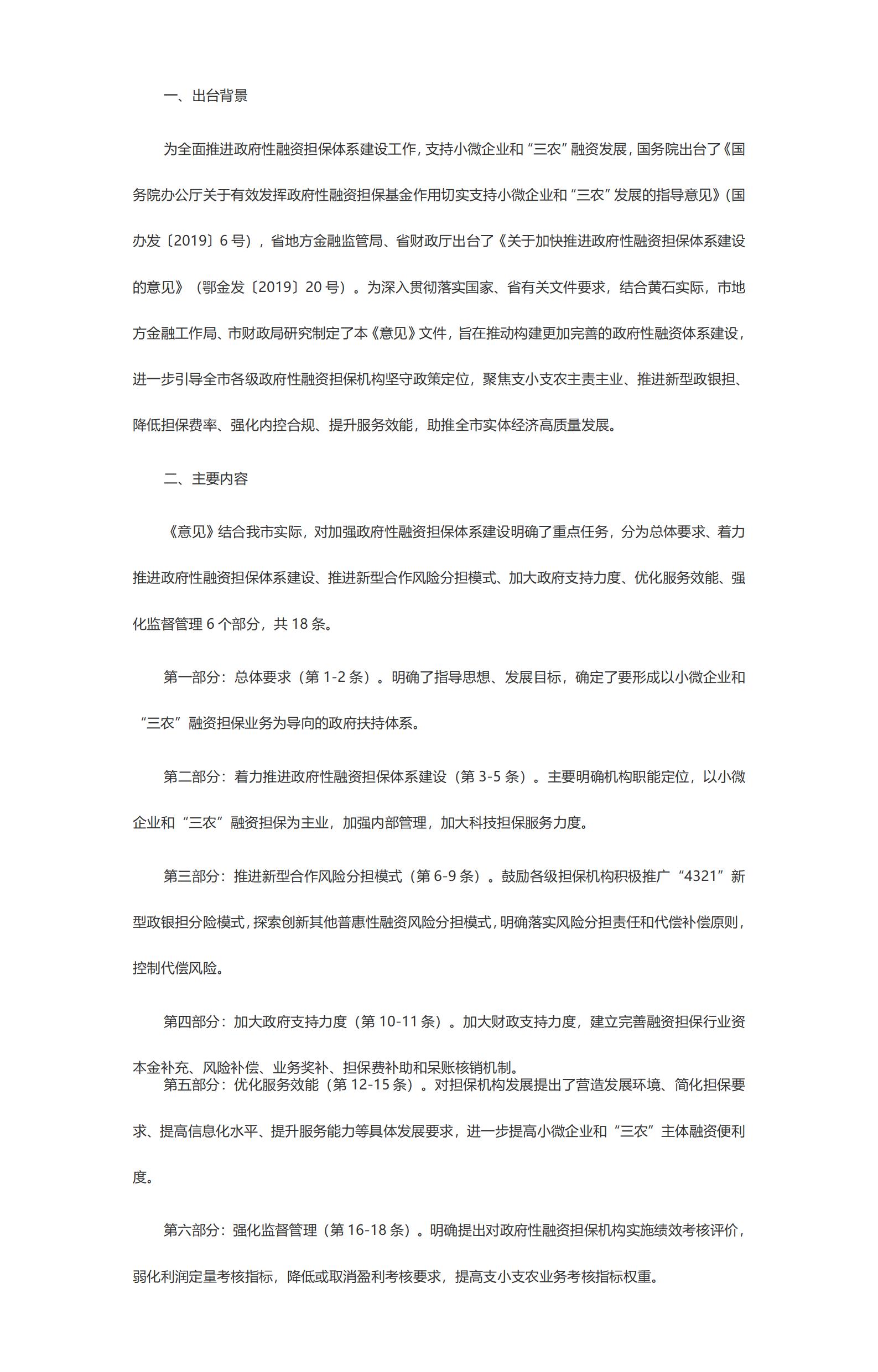 关于加快推进黄石市政府性融资担保体系建设的意见的政策解读