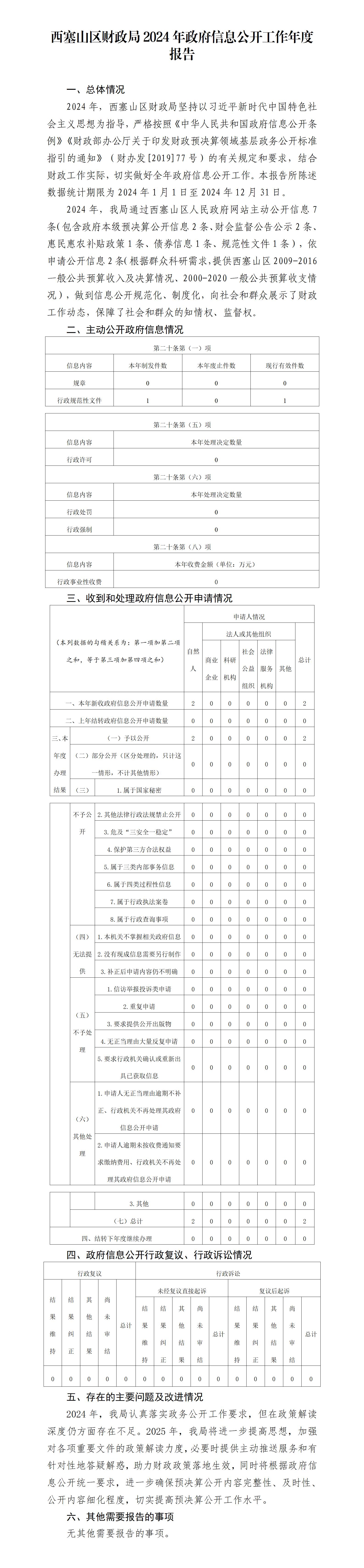 西塞山区财政局2024年政府信息公开工作年度报告