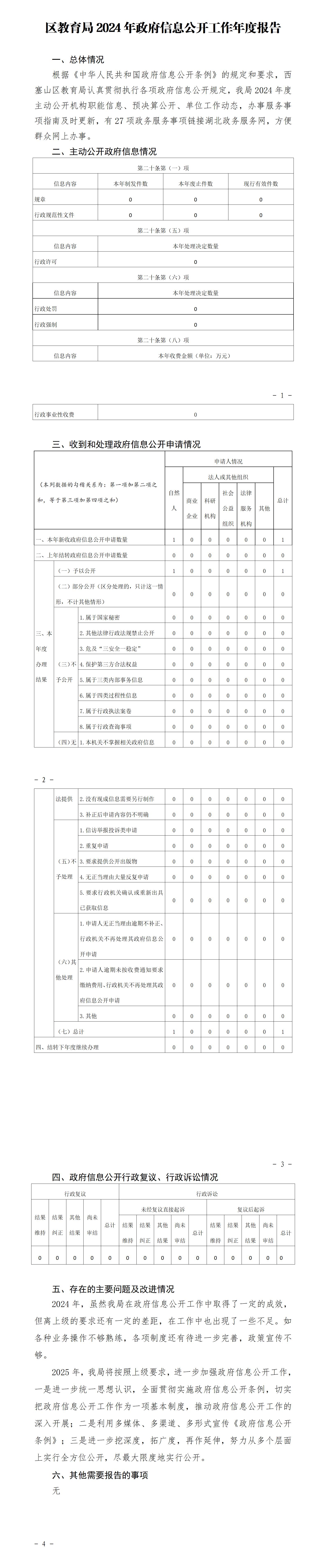 西塞山区教育局2024年政府信息公开工作年度报告