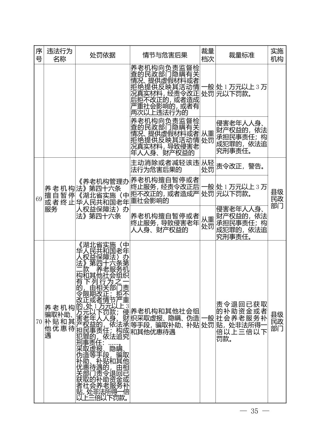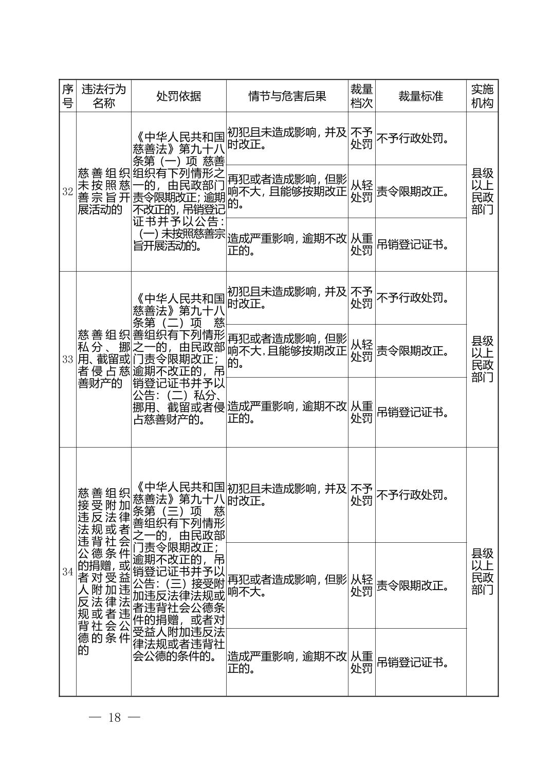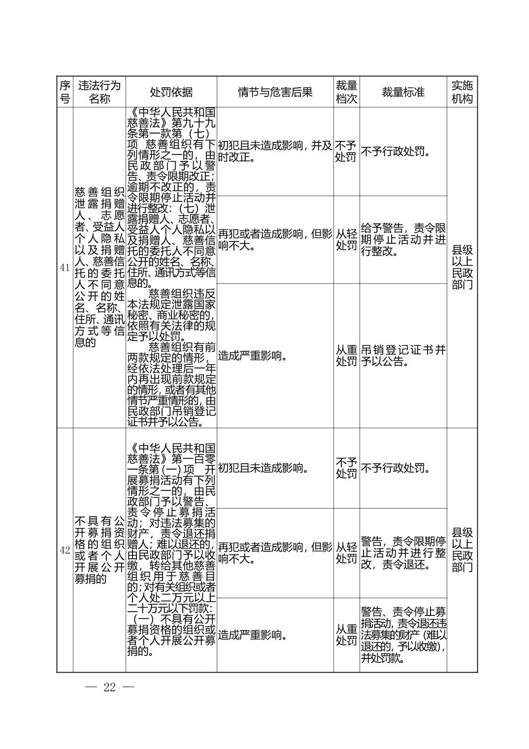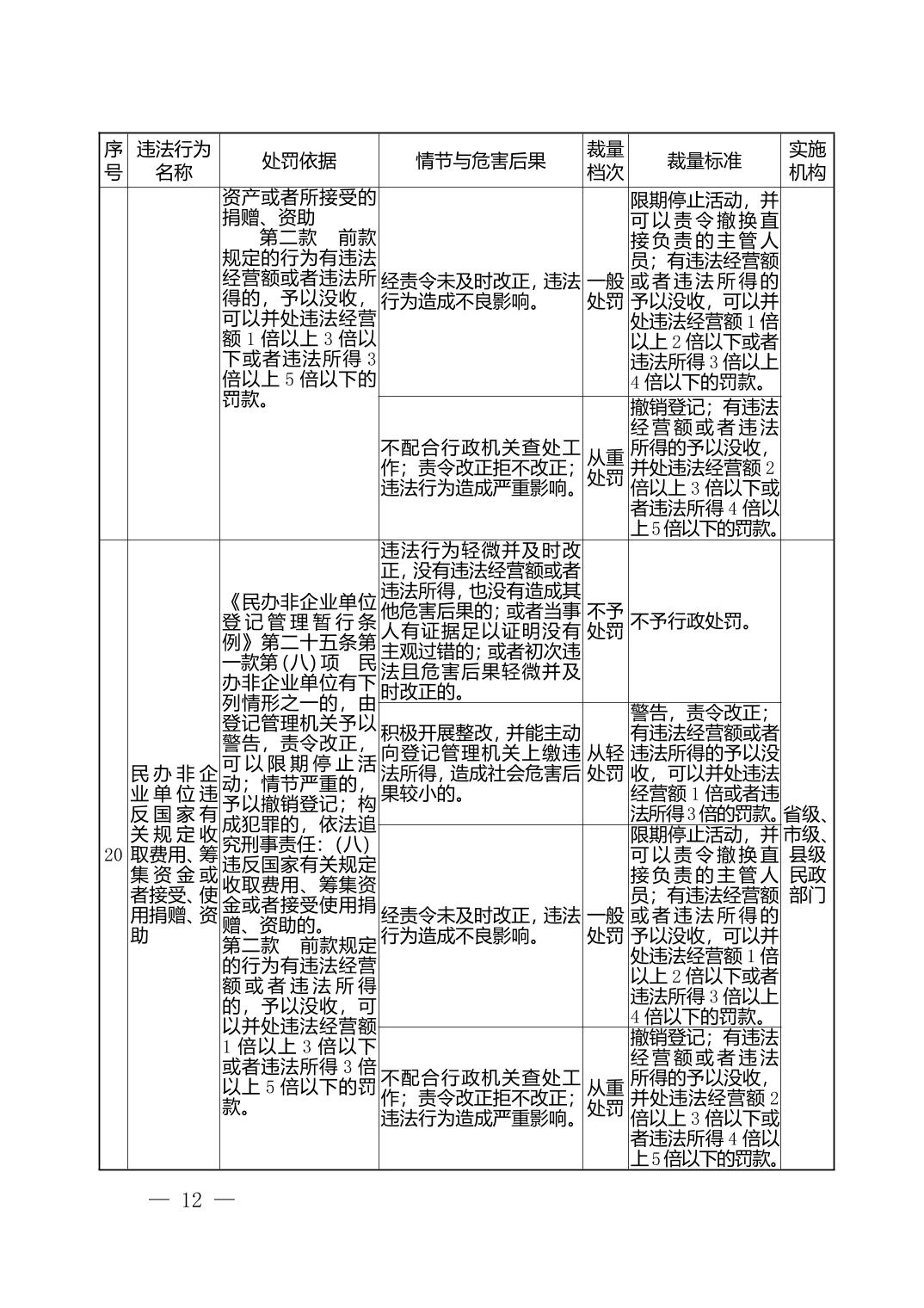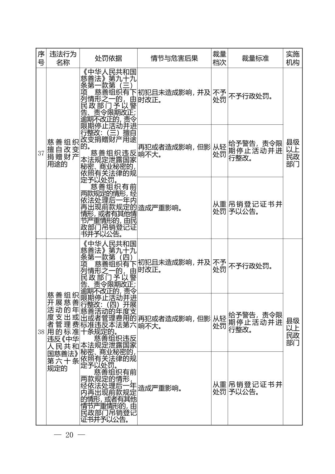 湖北省民政部门行政处罚自由裁量权基准表