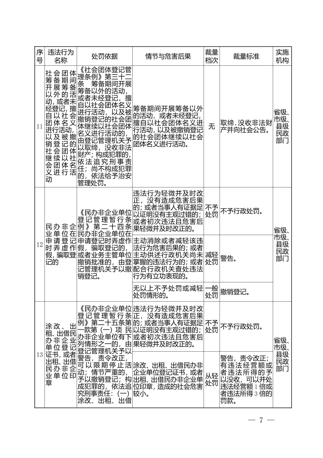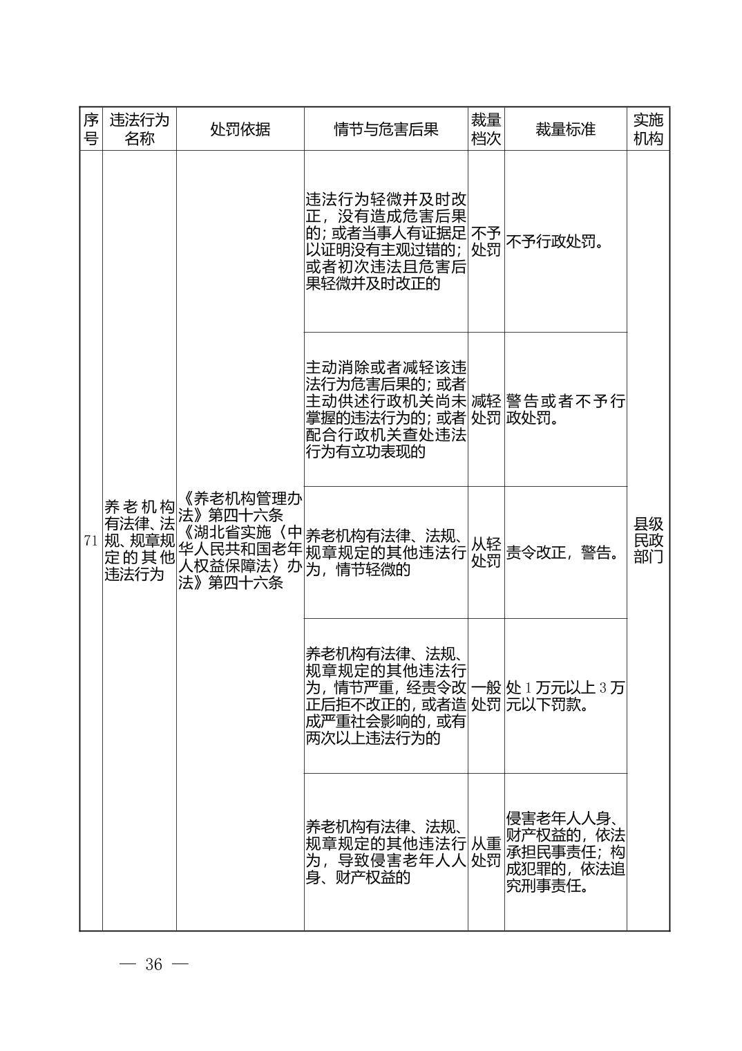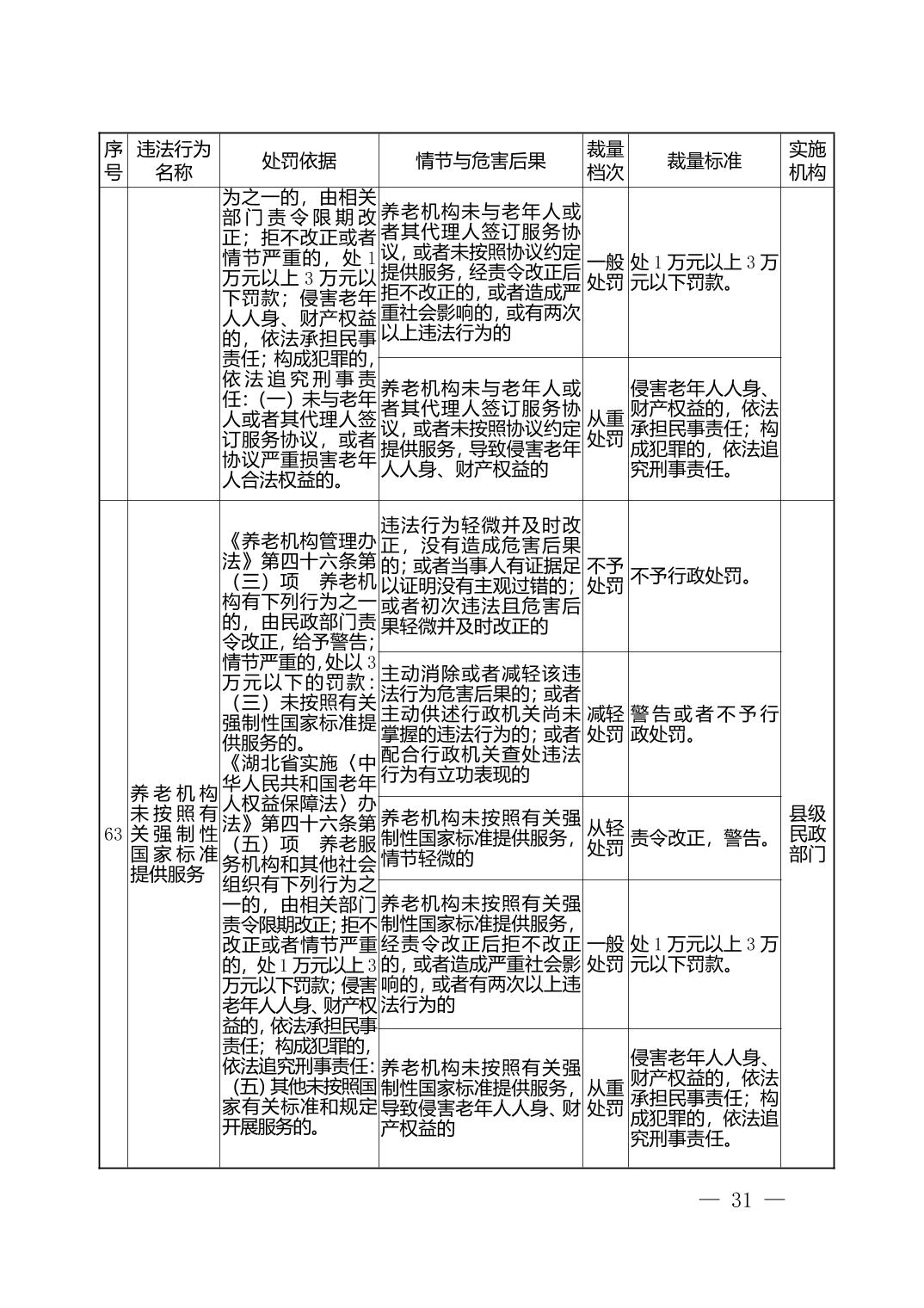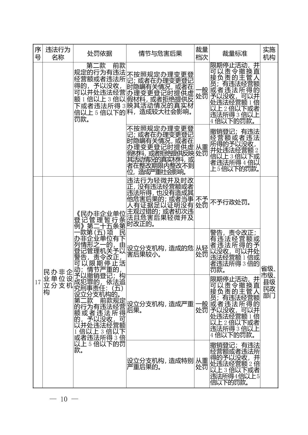 湖北省民政部门行政处罚自由裁量权基准表