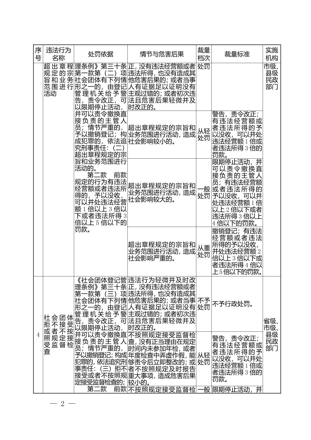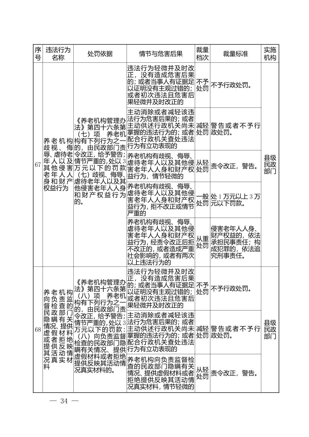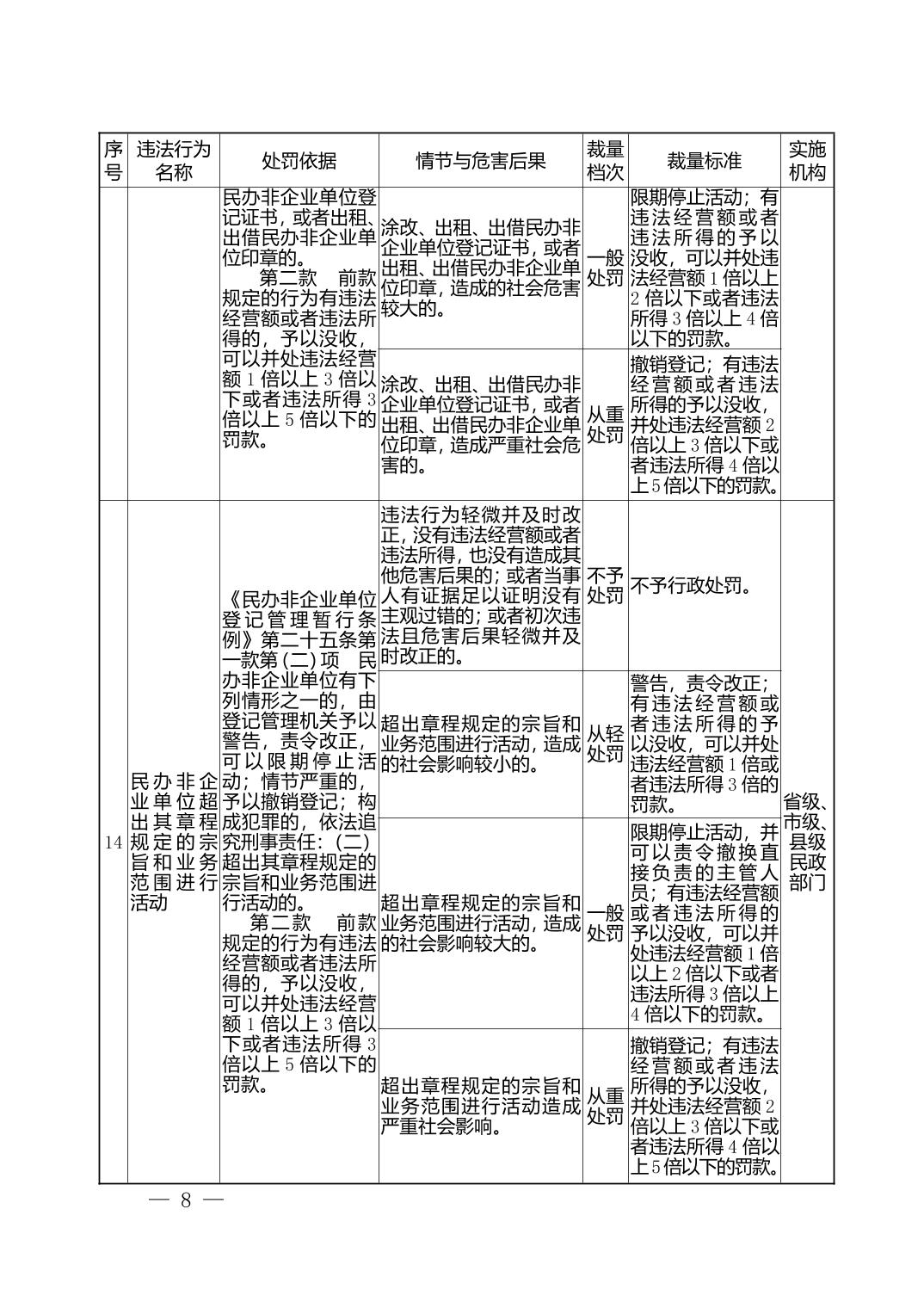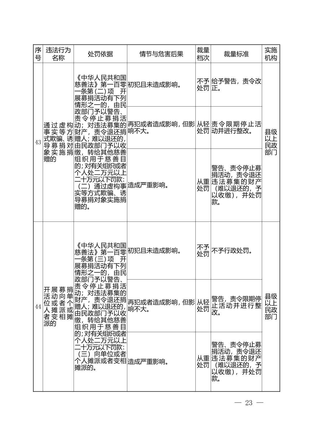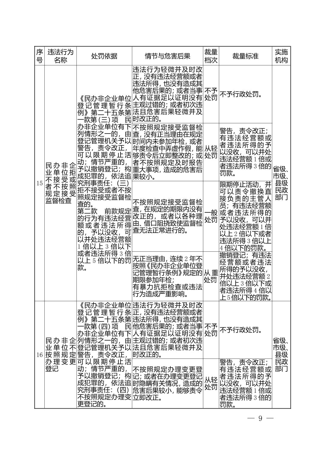 湖北省民政部门行政处罚自由裁量权基准表