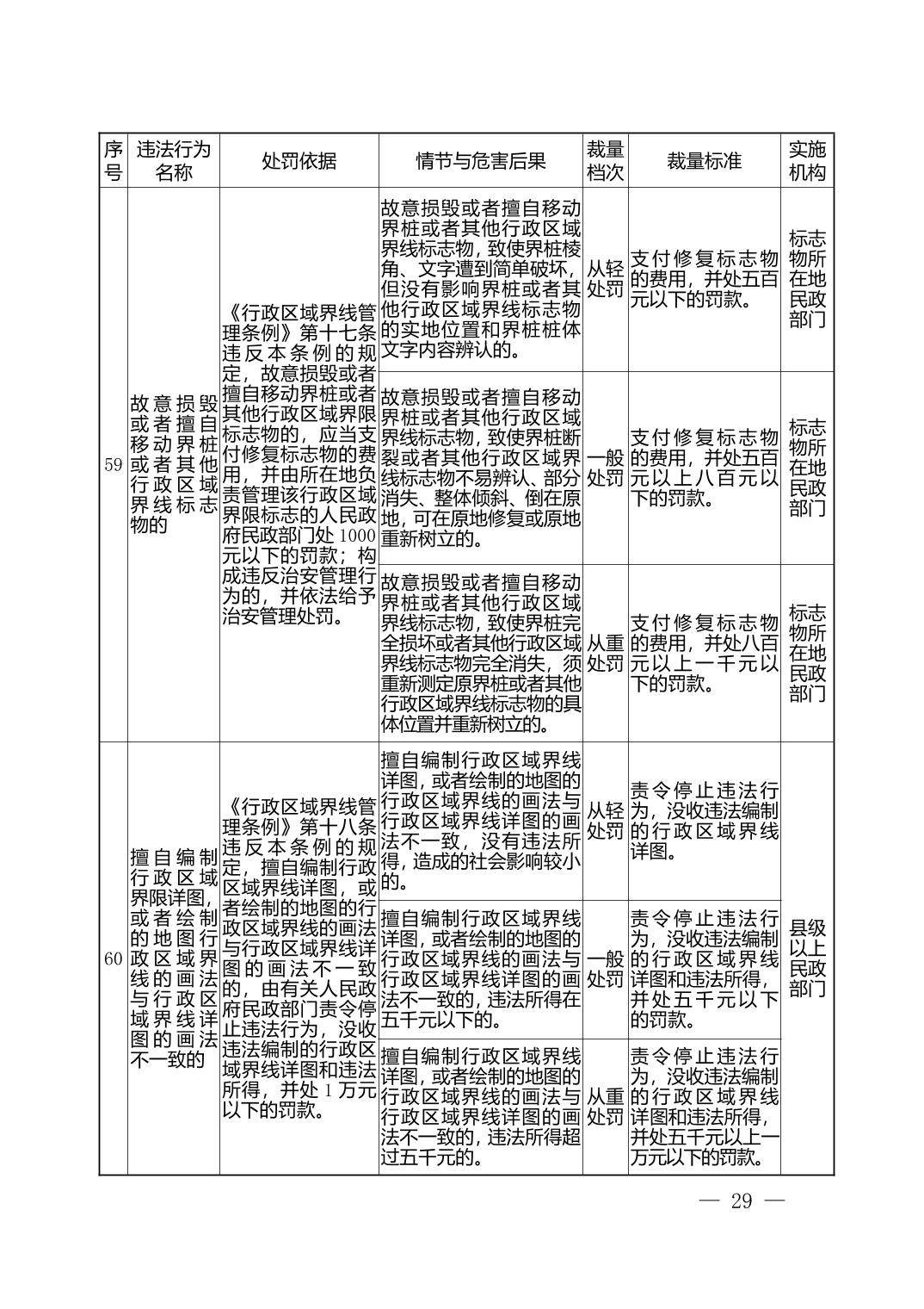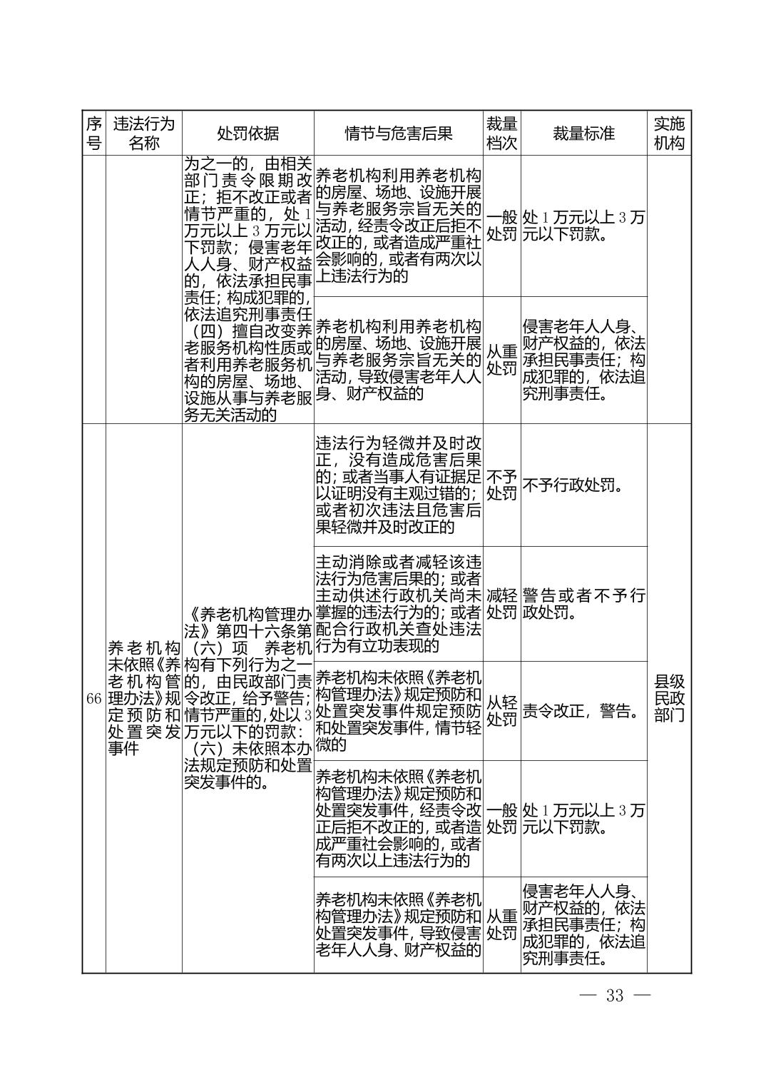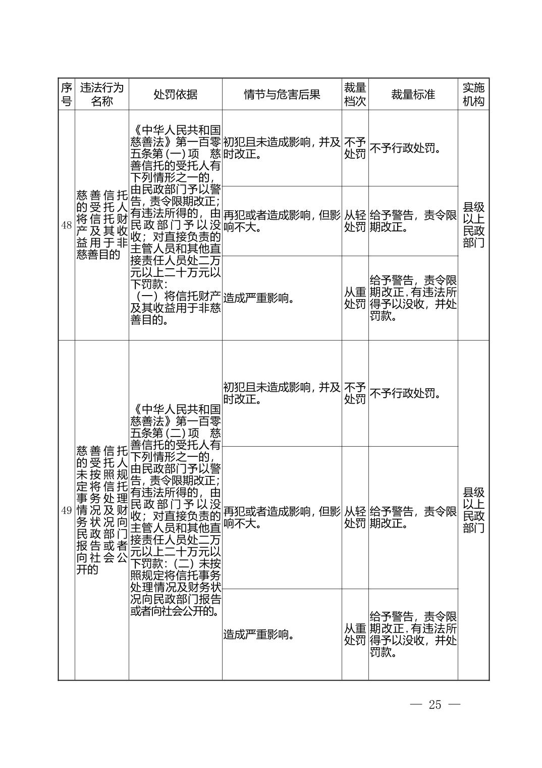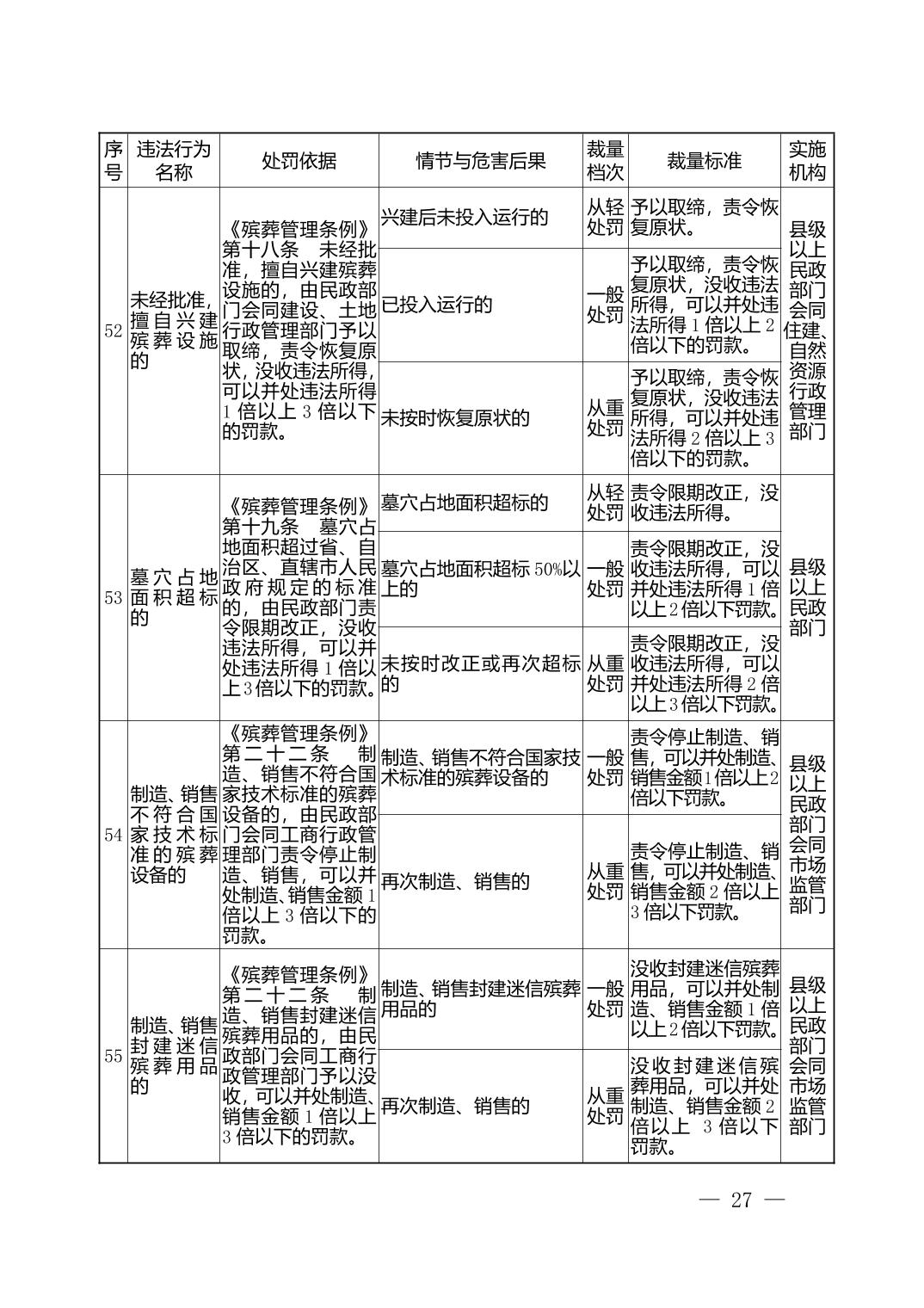 湖北省民政部门行政处罚自由裁量权基准表