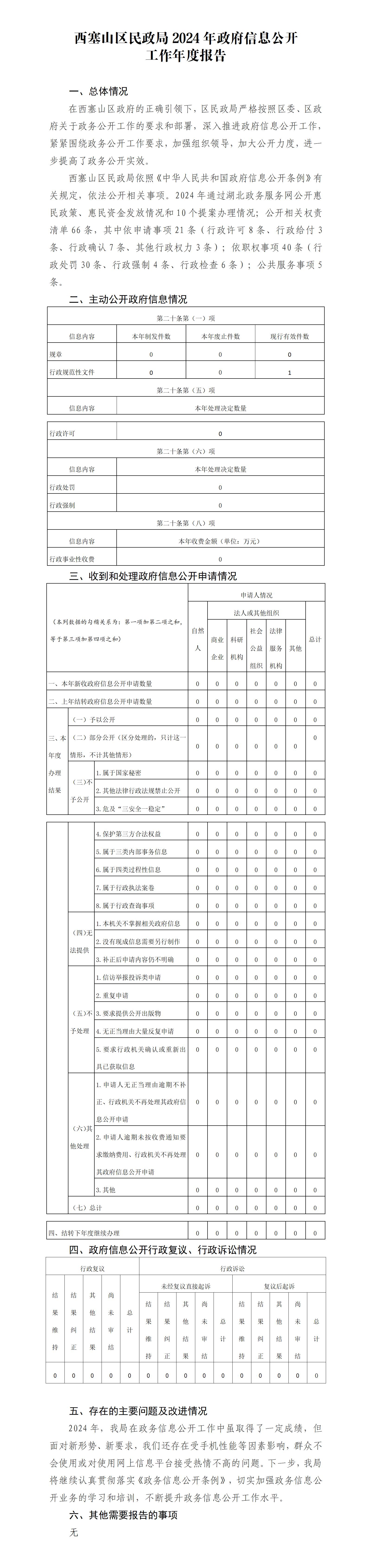西塞山区民政局2024年政府信息公开工作年度报告