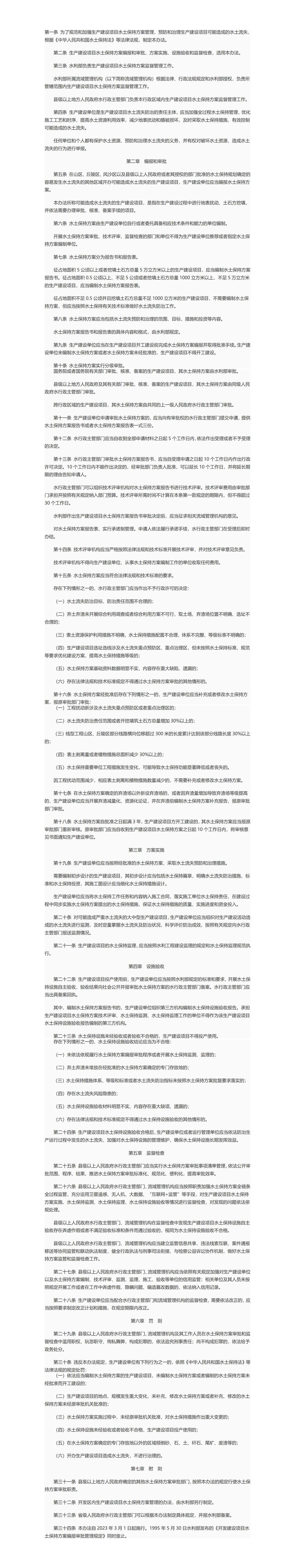 【文字解读】《生产建设项目水土保持方案管理办法》