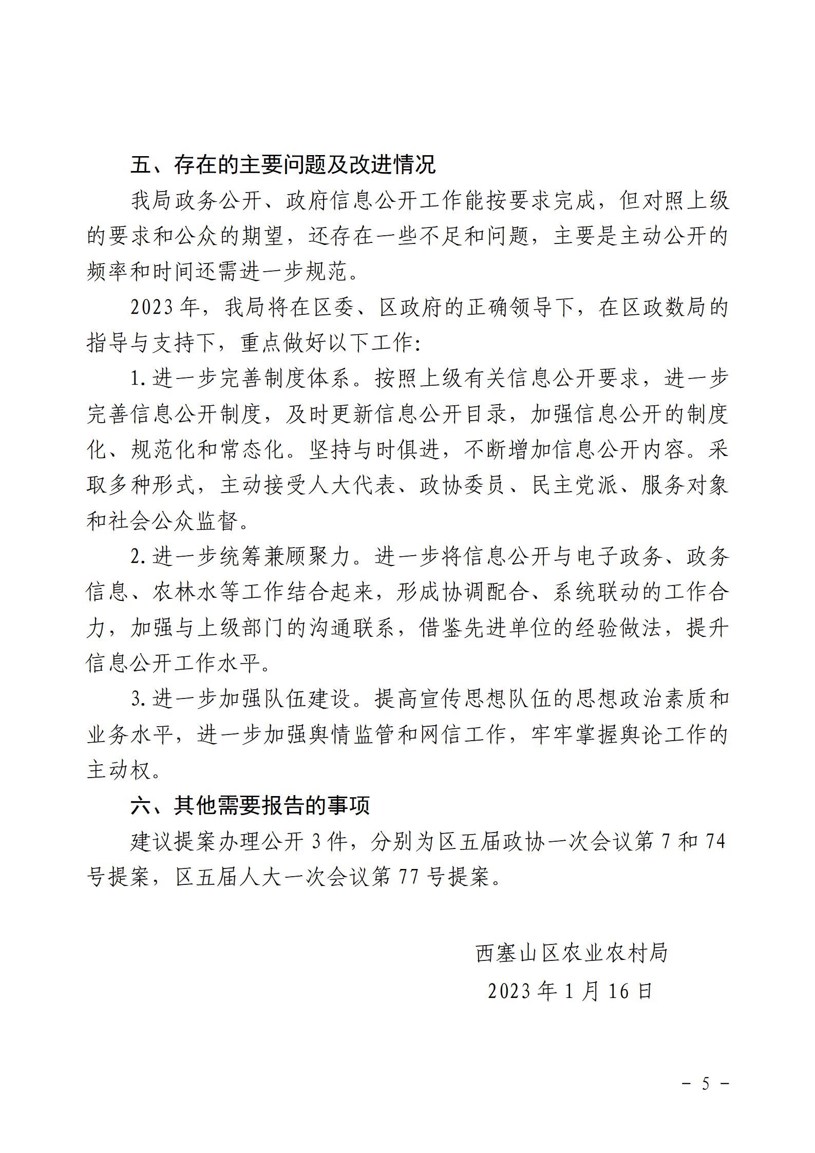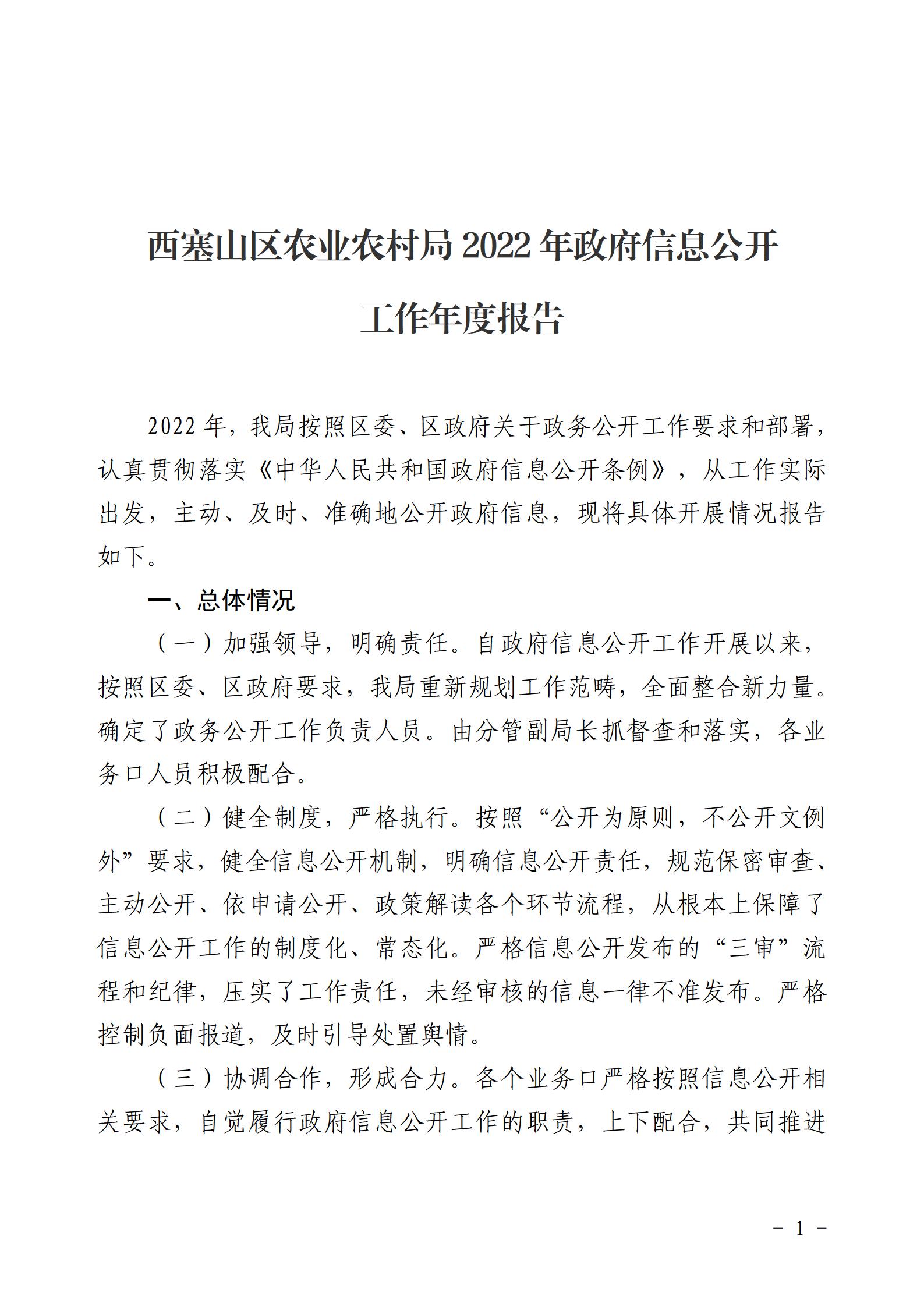 西塞山区农业农村局2022年政府信息公开工作年度报告