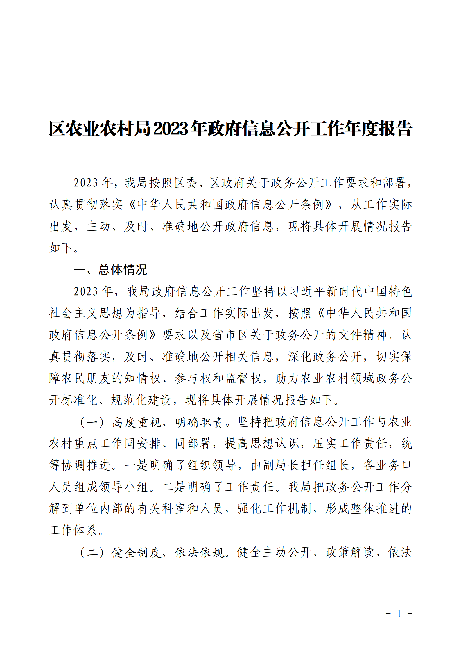 西塞山区农业农村局2023年政府信息公开工作年度报告