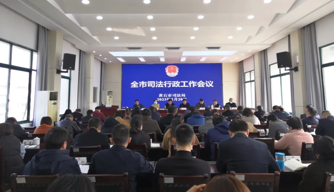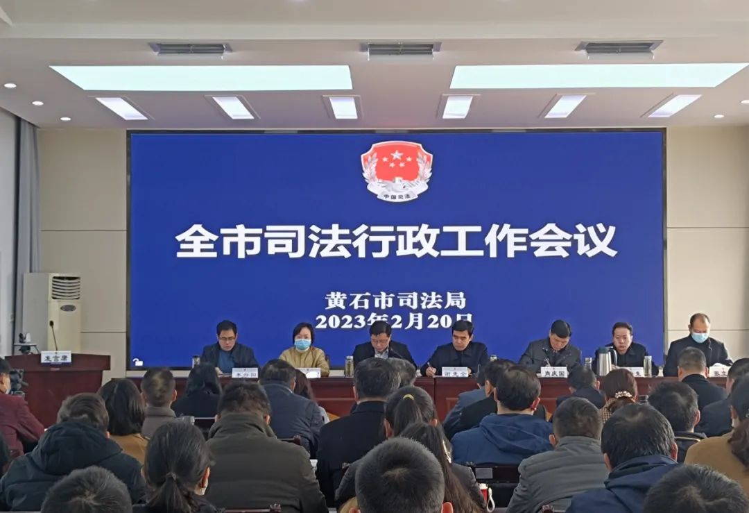 2月20日上午,黄石市司法局召开2023年全市司法行政工作会议,传达学习习近平总书记对政法工作的重要指示、省委政法工作会议、全省司法行政工作会议及市委政法工作会议精神,全面总结2022年全市司法行政工作,分析形势,安排部署2023年主要工作任务。市司法局党组书记、局长谢先全出席会议并讲话,局党组成员、副局长肖庆国主持会议。各县(市、区)司法局主要负责人围绕2022年工作成绩及2023年工作计划进行交流发言。