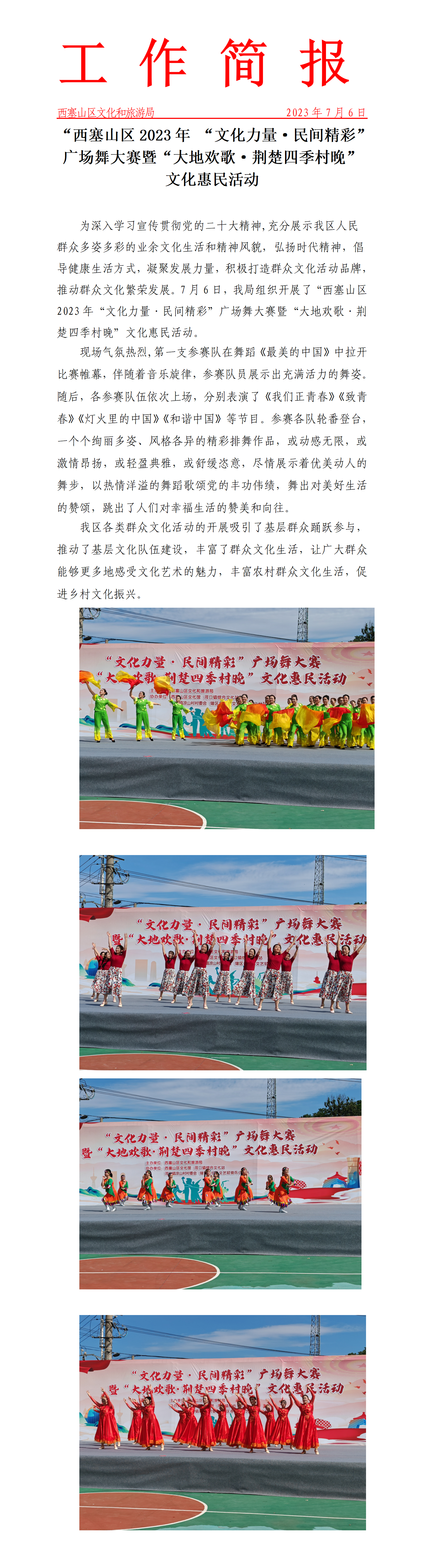 “西塞山区2023年 “文化力量·民间精彩”广场舞大赛暨“大地欢歌·荆楚四季村晚” 文化惠民活动