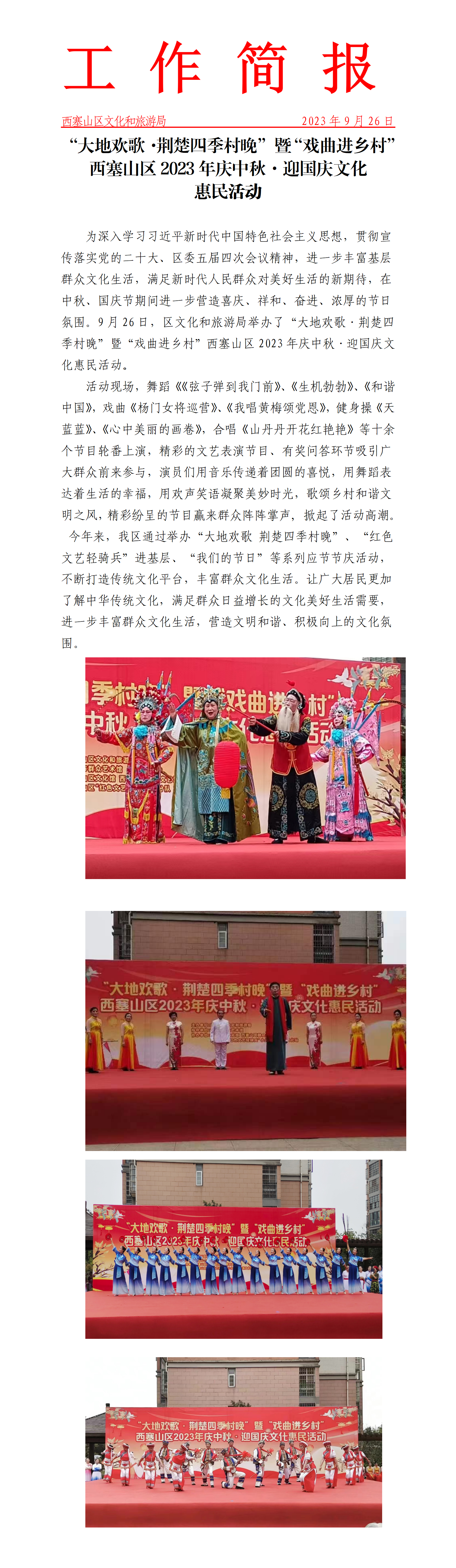 “大地欢歌·荆楚四季村晚”暨“戏曲进乡村” 西塞山区2023年庆中秋·迎国庆文化惠民活动