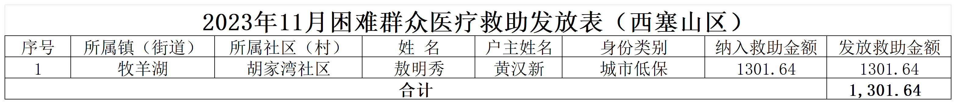 西塞山区2023年11月困难群众医疗救助发放表