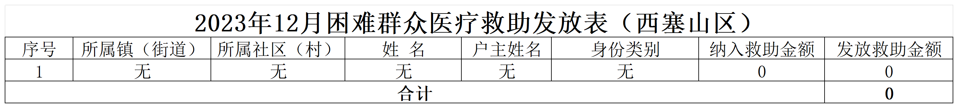 西塞山区2023年12月困难群众医疗救助发放表