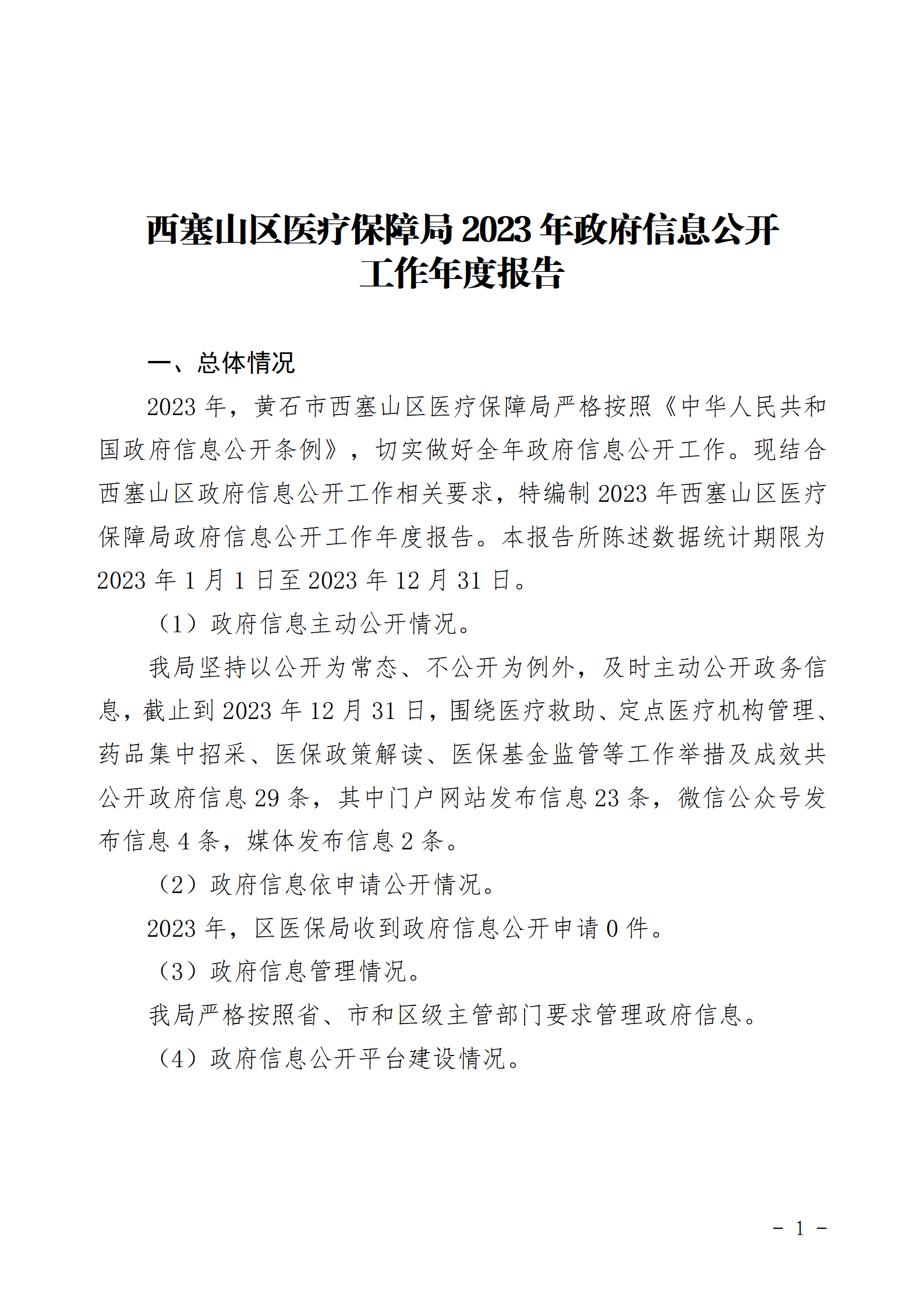 西塞山区医保局2023年政府信息公开工作年度报告