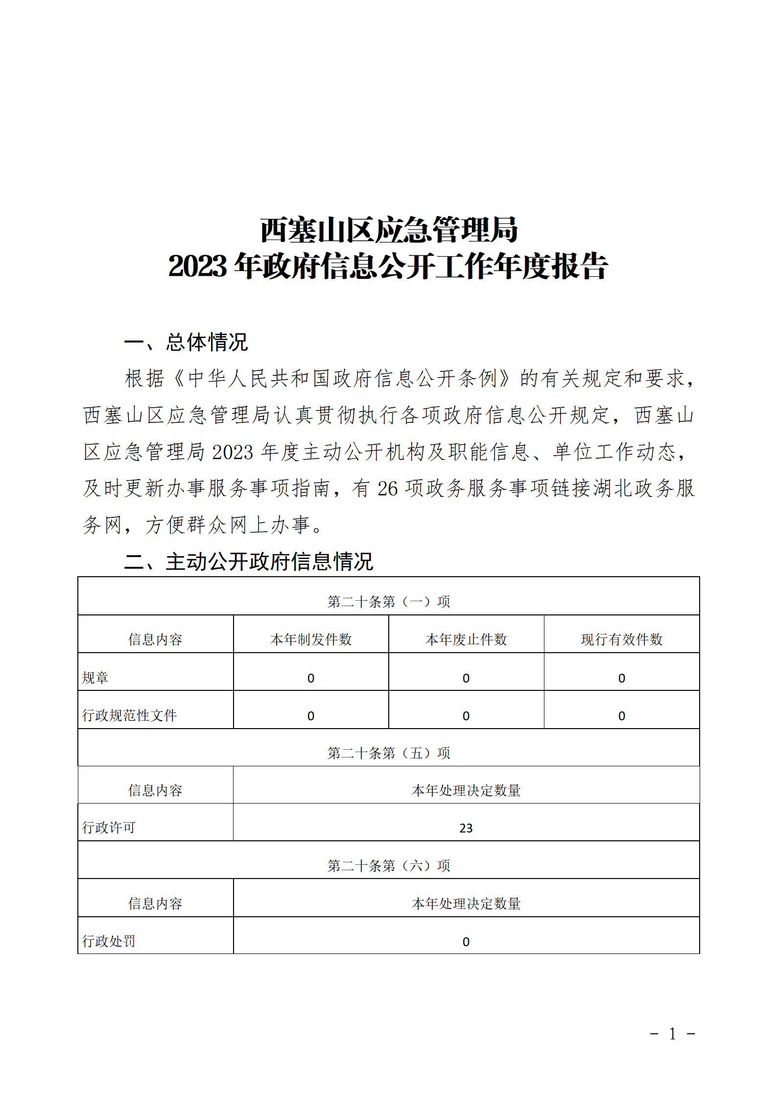西塞山区应急管理局2023年政府信息公开工作年度报告