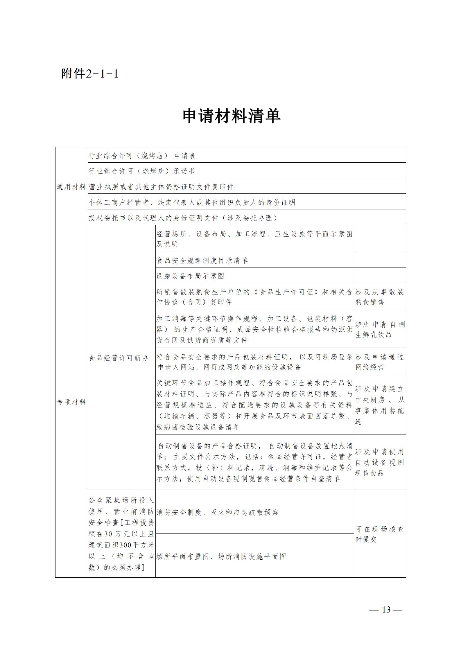 1.各地应按照本办事指南内容、工作流程图及附件2-1-1 《申请材料清单》制定本地区行业综合许可(烧烤店) 告知单。