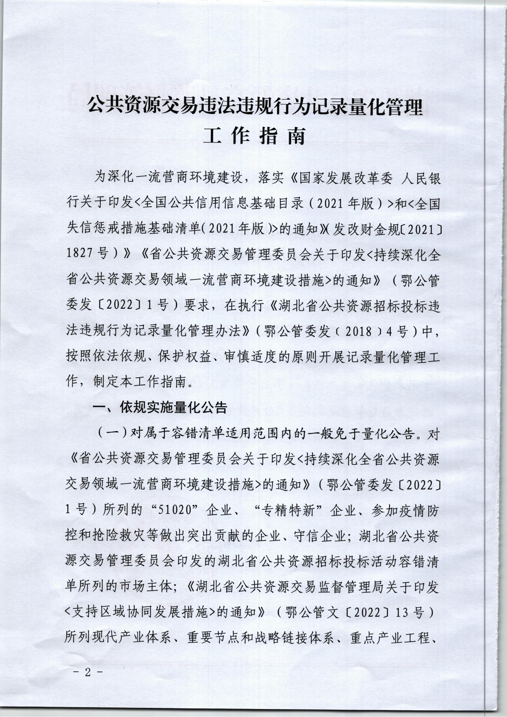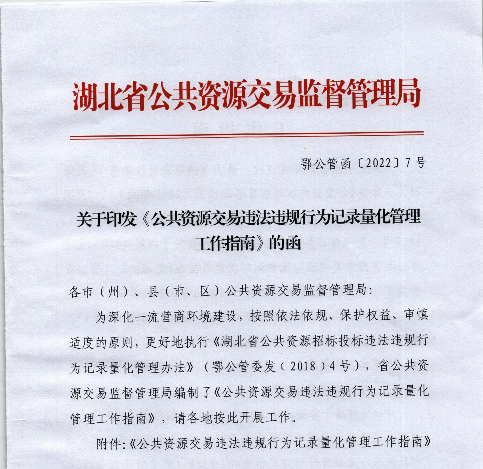 关于印发《公共资源交易违法违规行为记录量化管理工作指南》的函