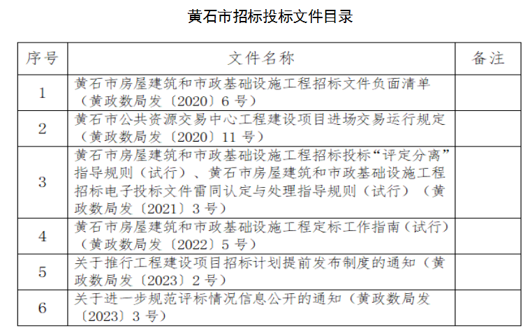 黄石市招标投标文件目录