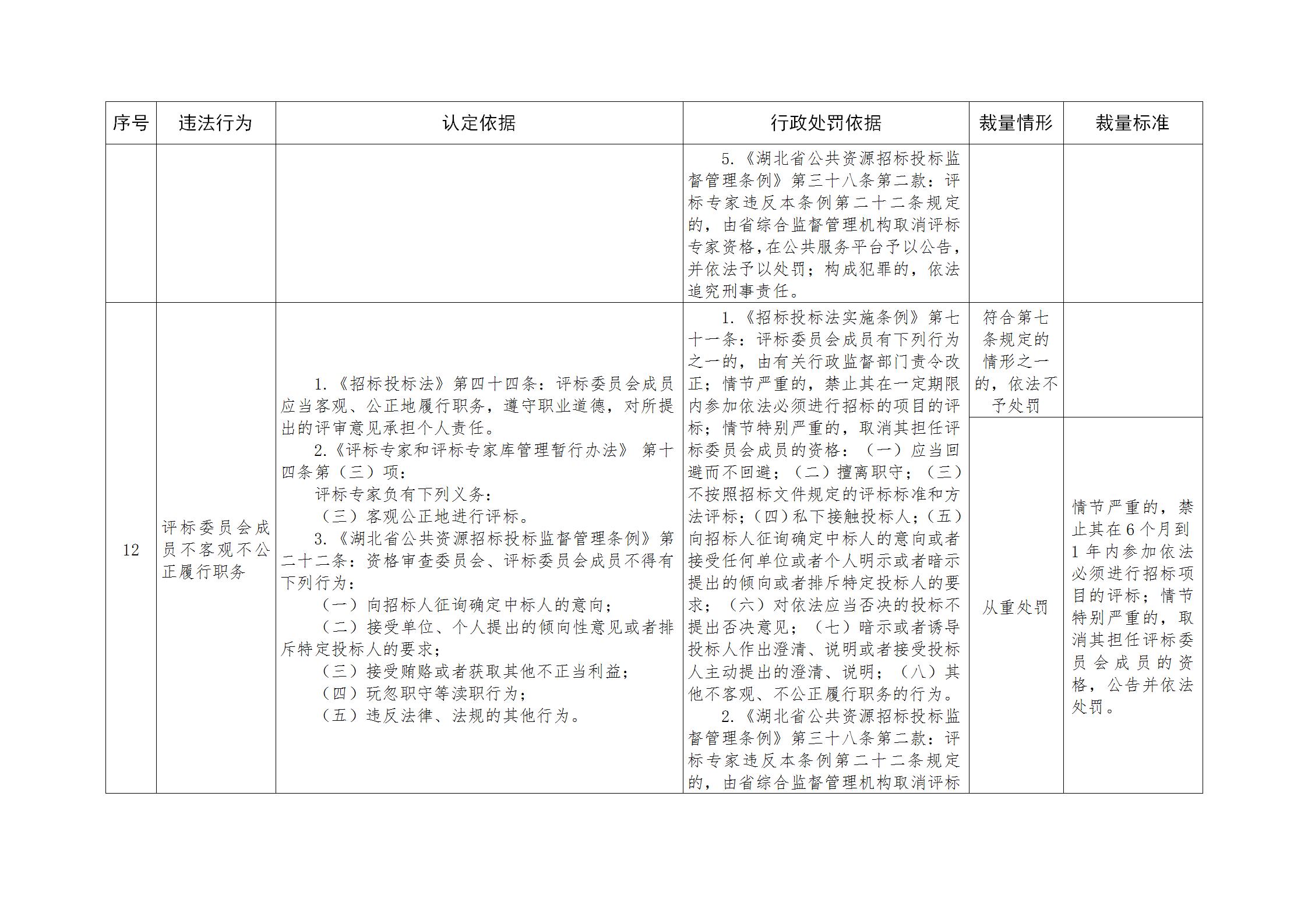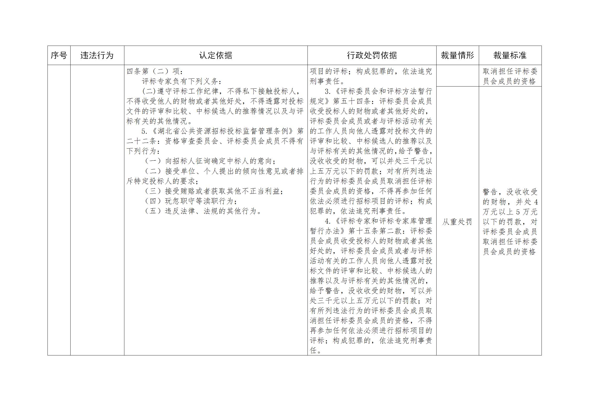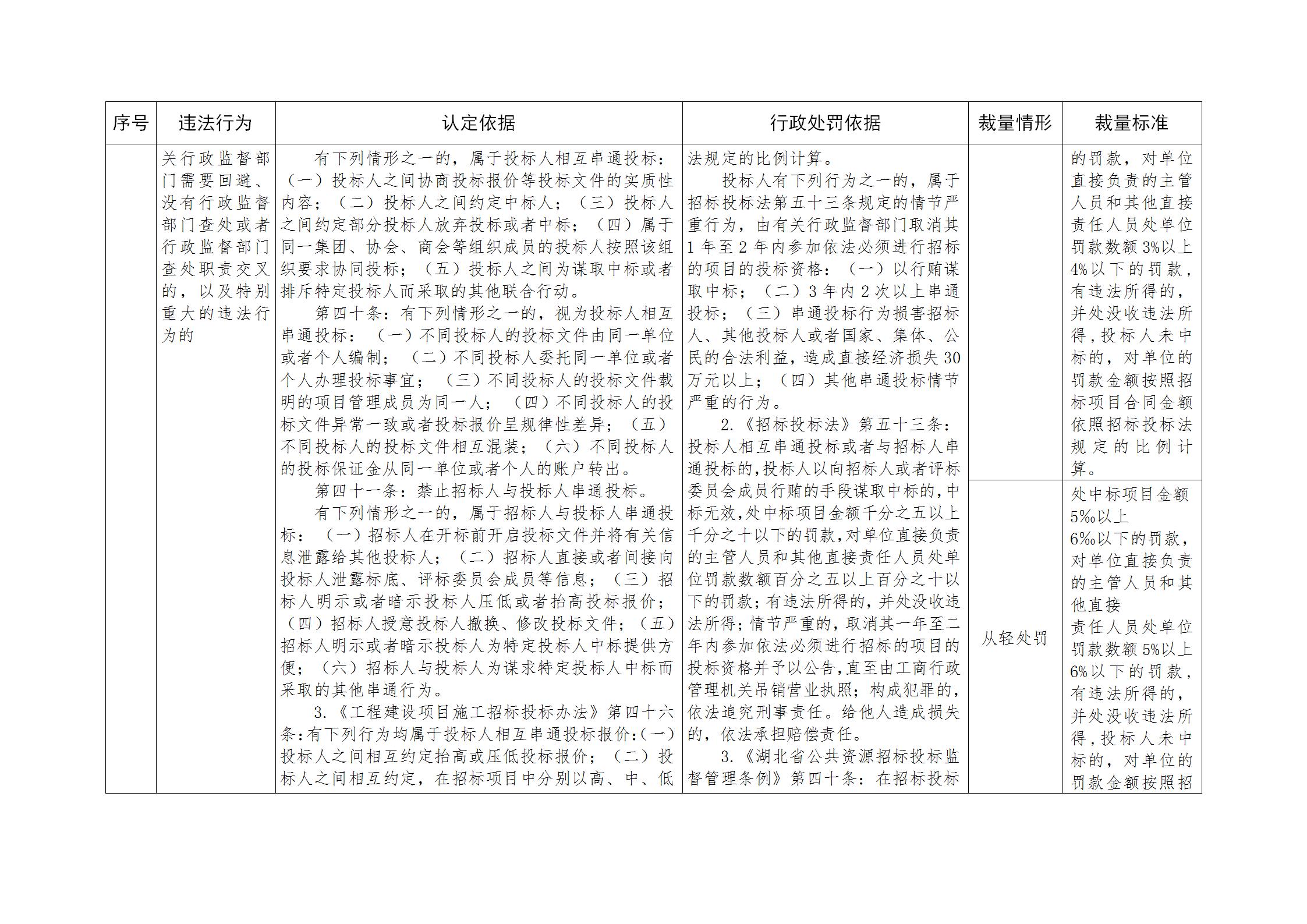 湖北省公共资源招标投标行政处罚裁量基准规定