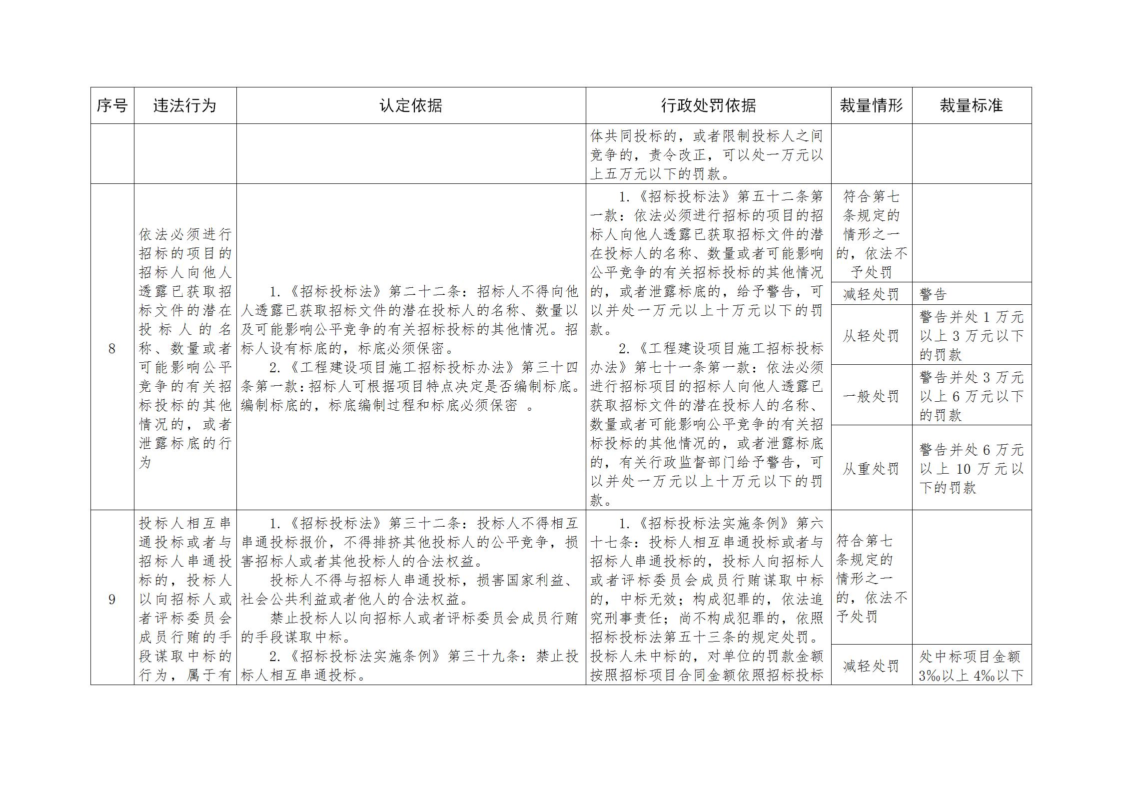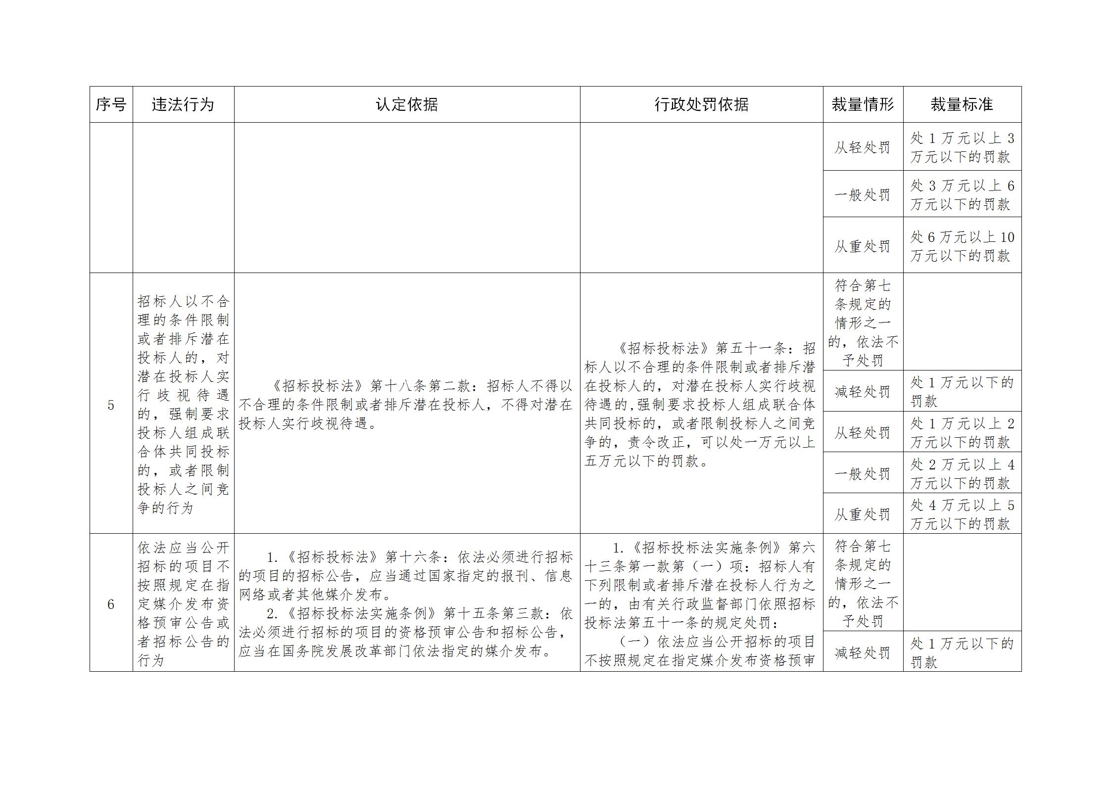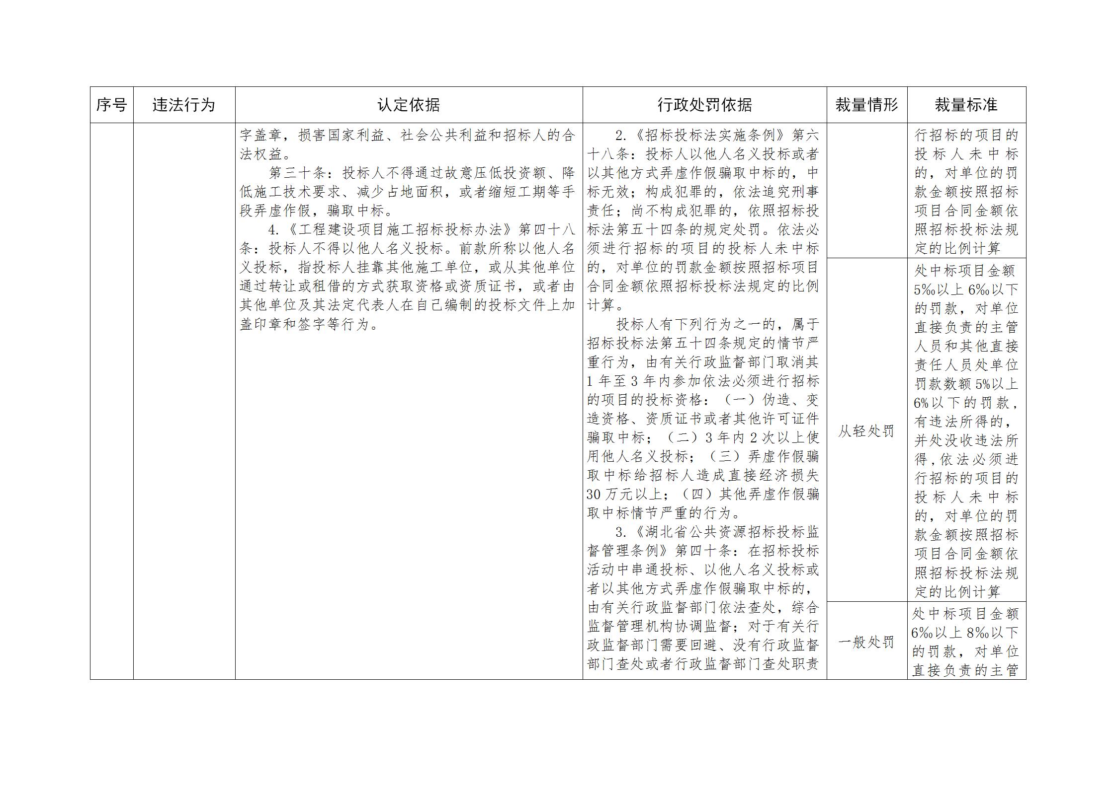 湖北省公共资源招标投标行政处罚裁量基准规定
