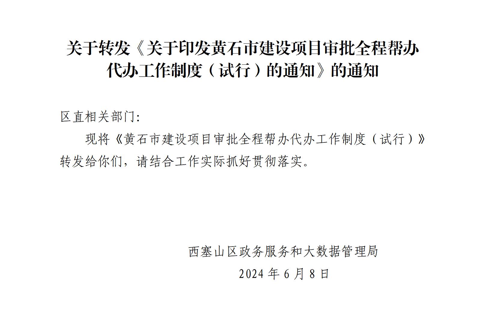 关于转发《关于印发黄石市建设项目审批全程帮办代办工作制度(试行)的通知》的通知