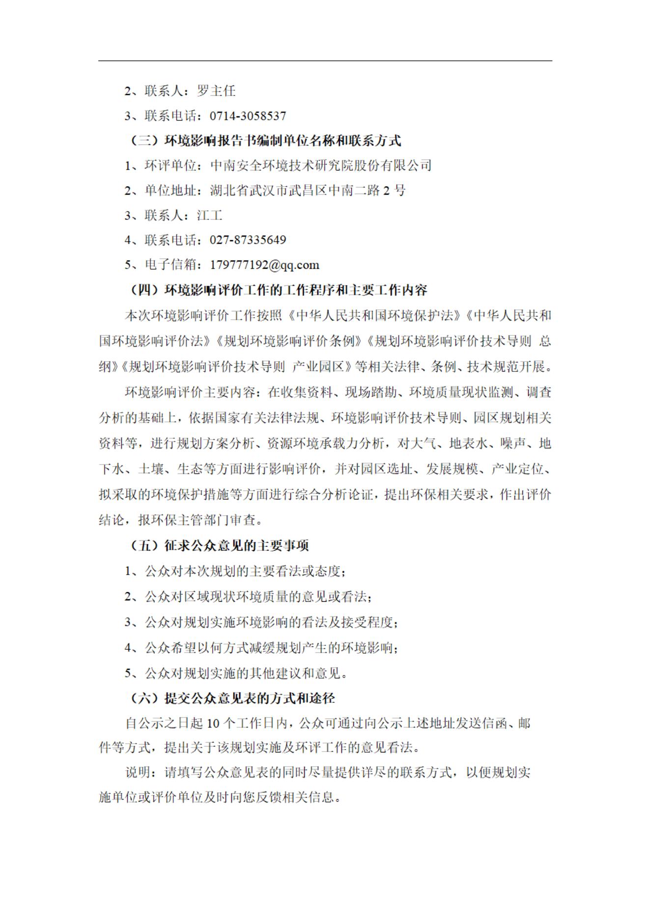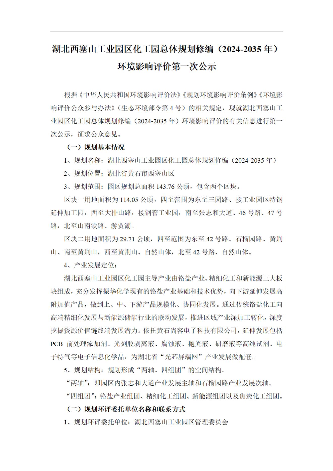 湖北西塞山工业园区化工园总体规划修编(2024-2035年)环境影响评价公众意见表