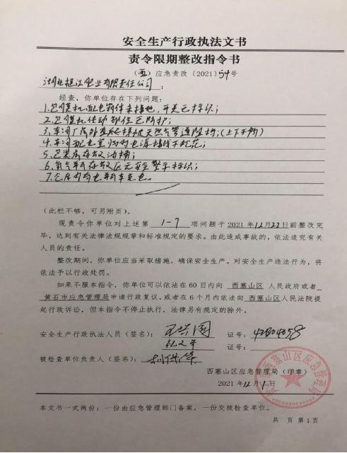 西塞山区应急管理局危化科2021年四季度“双随机、一公开”专项执法检查结果公示