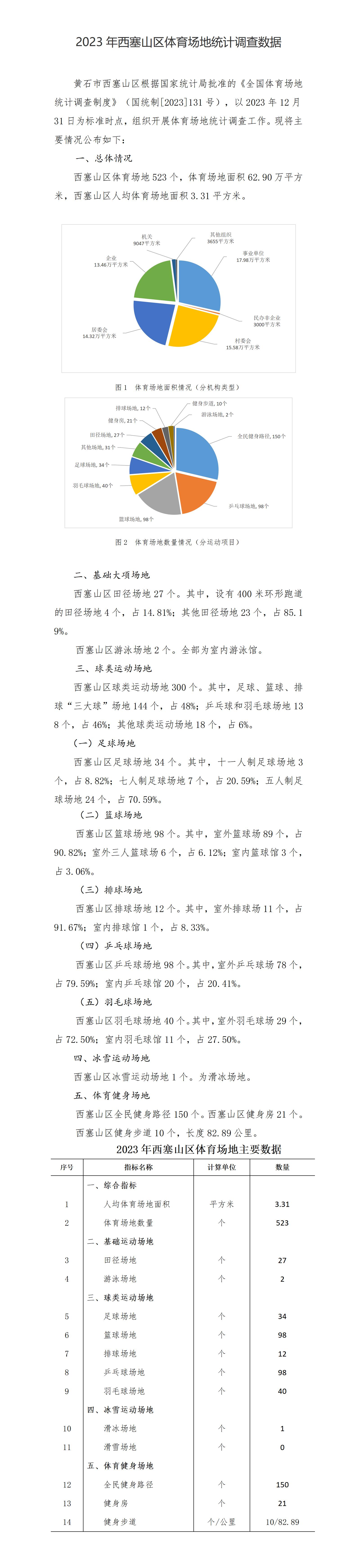 2023年西塞山区体育场地统计调查数据