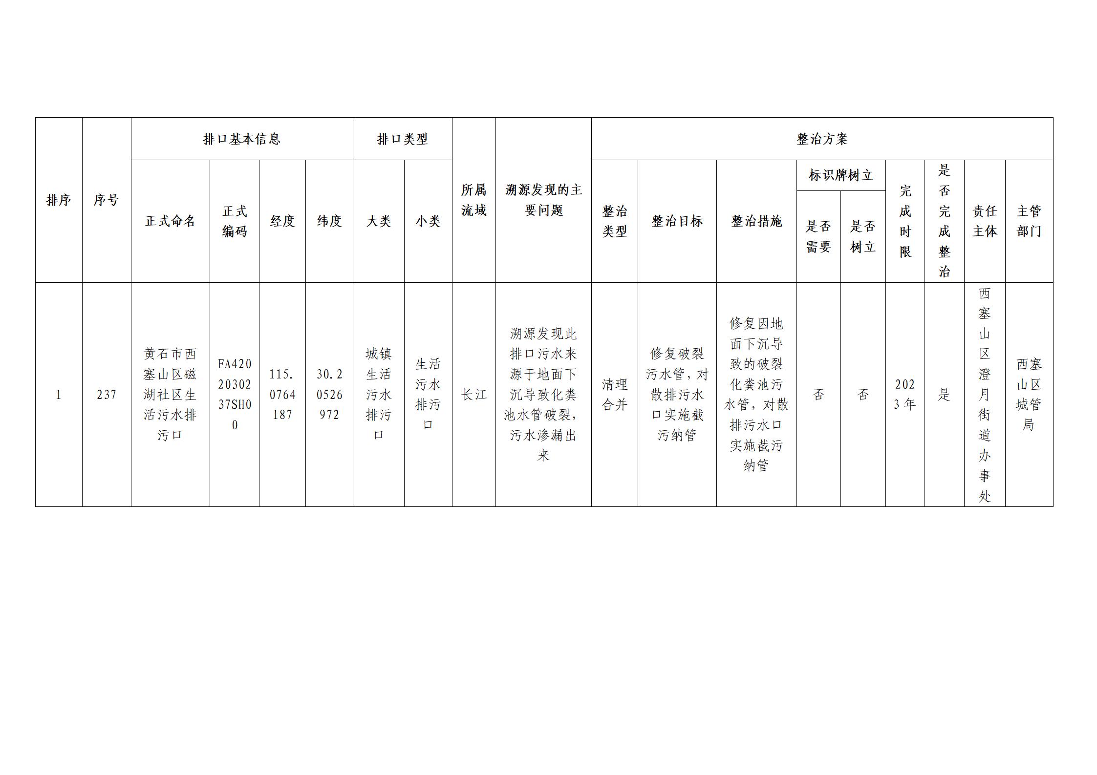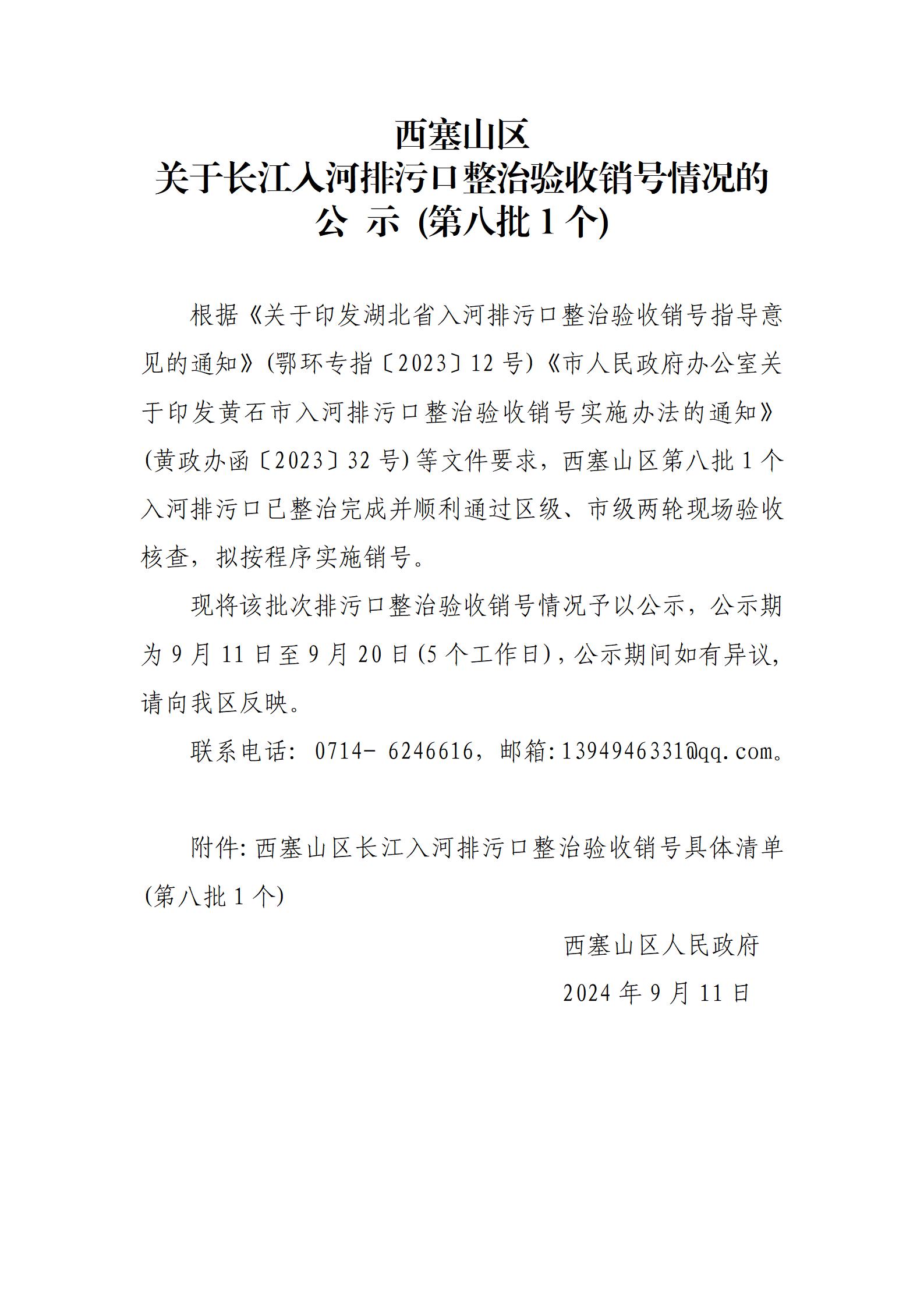 西塞山区关于长江入河排污口整治验收销号情况的公示 (第八批1个)