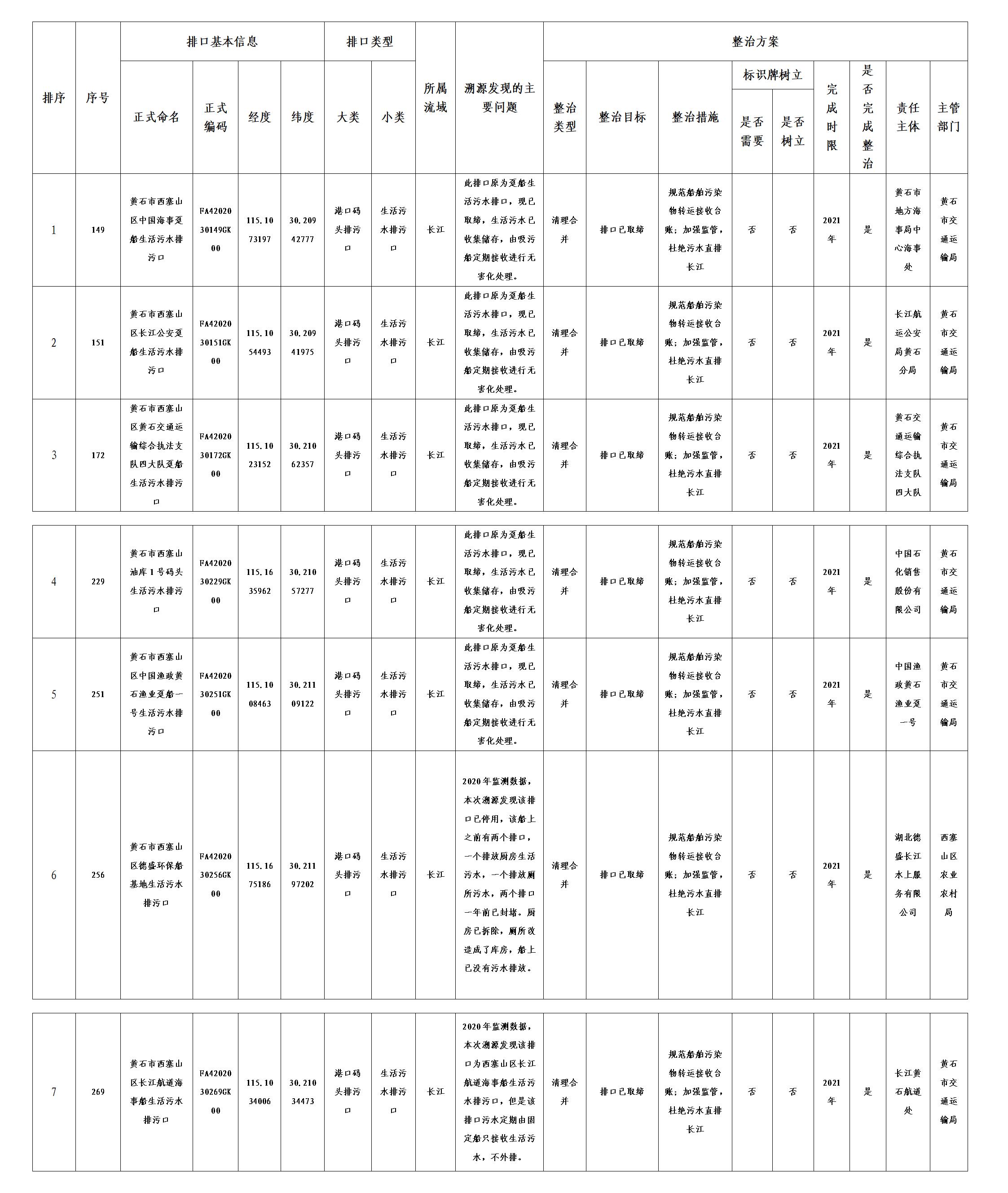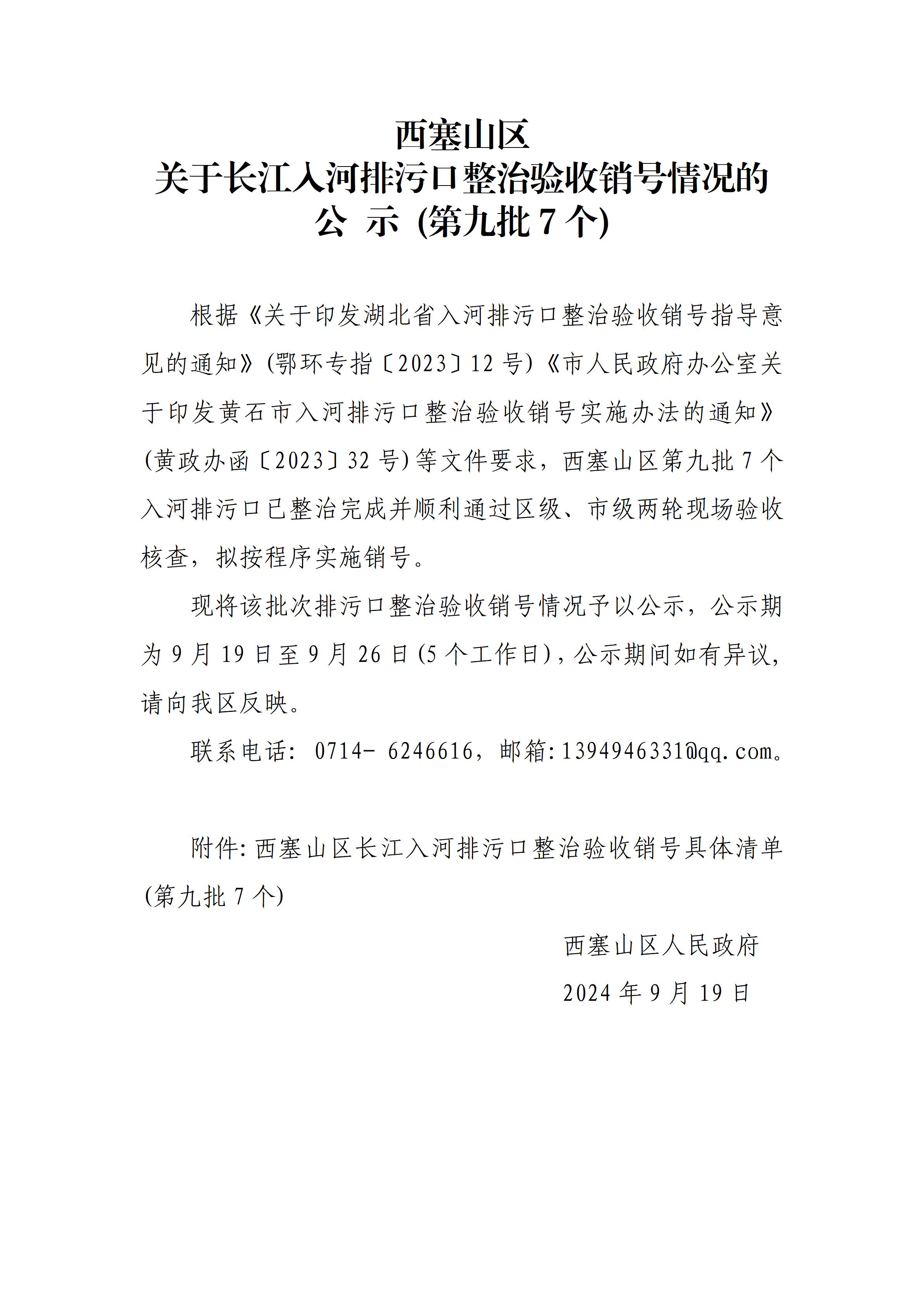 西塞山区关于长江入河排污口整治验收销号情况的公示 (第九批7个)