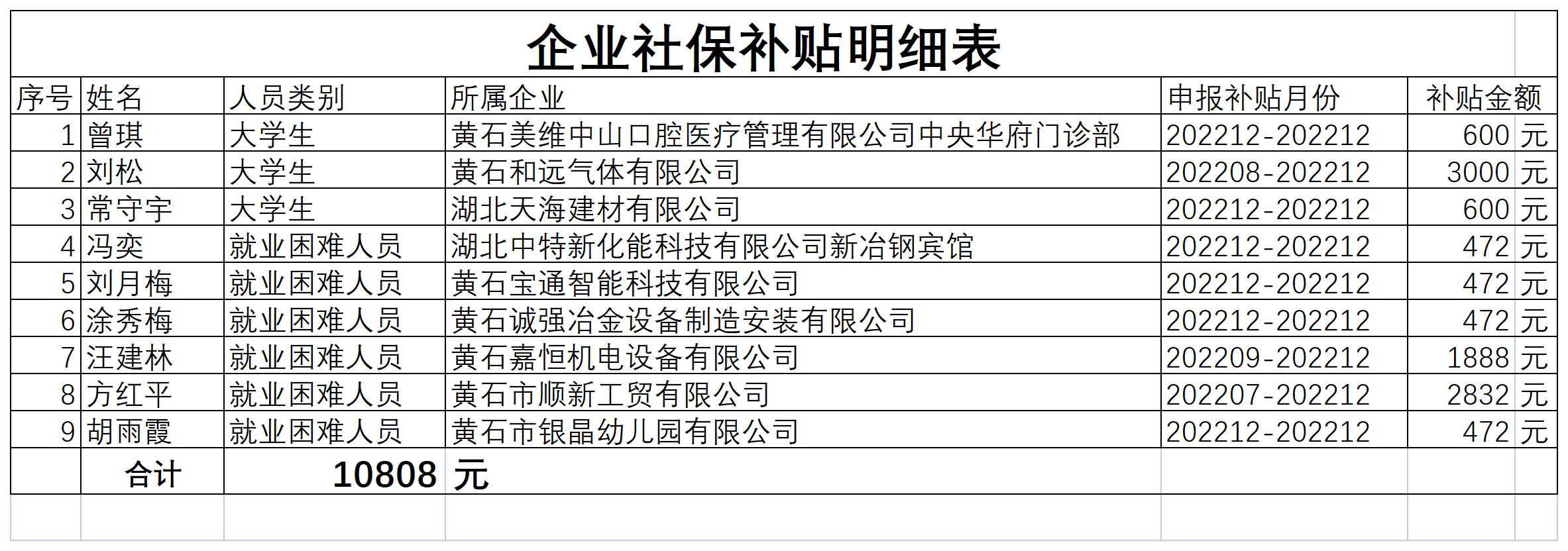 2023年上半年企业社保补贴公示