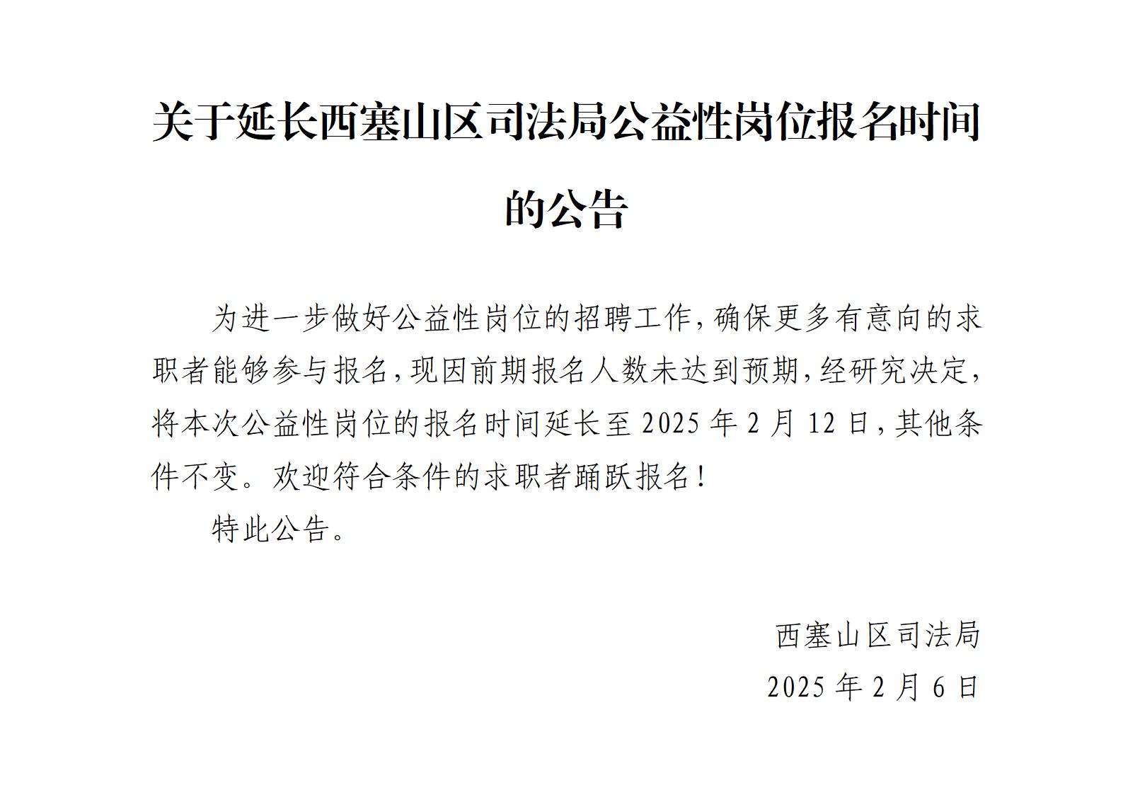 关于延长西塞山区司法局公益性岗位报名时间的公告