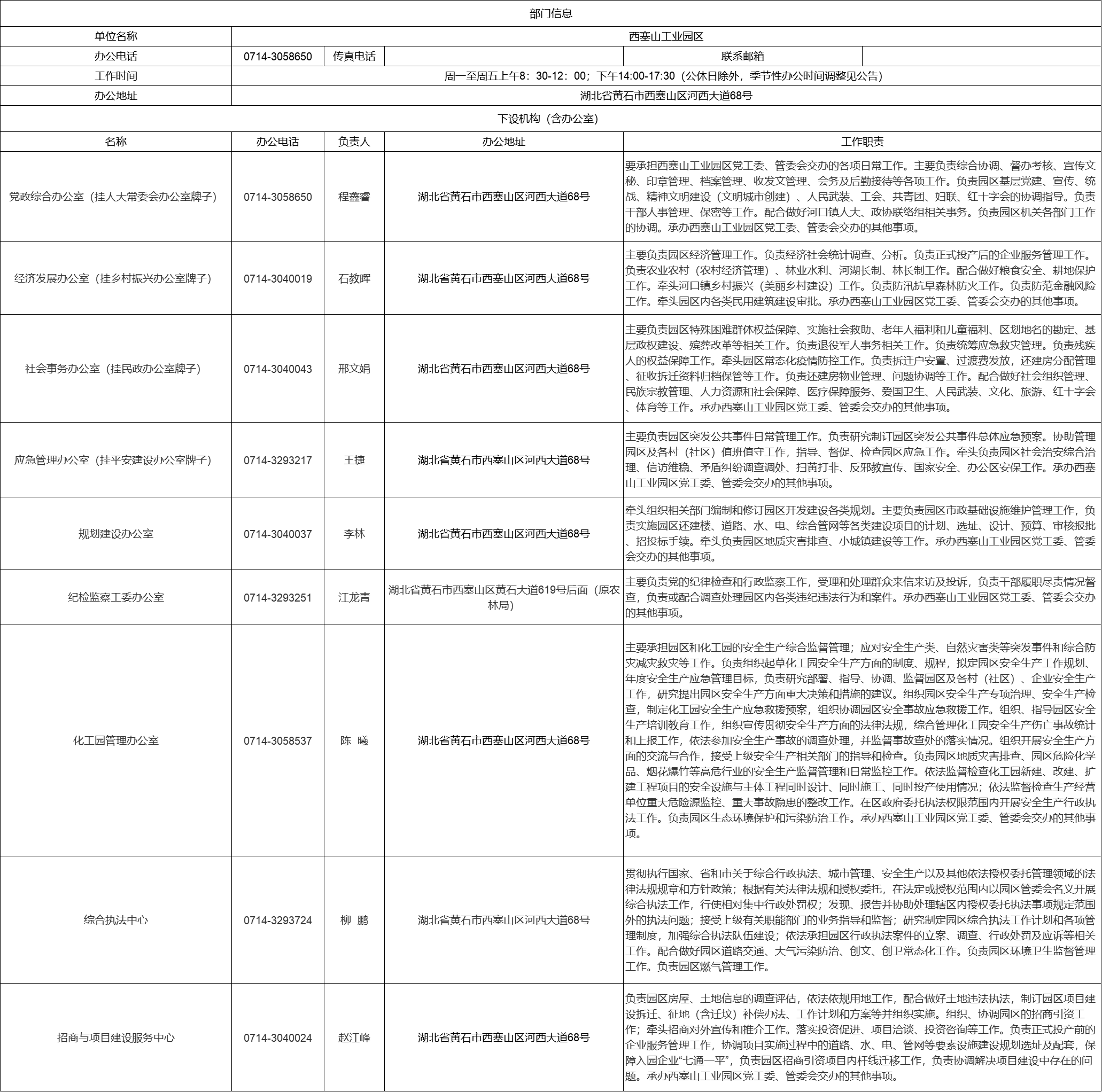 西塞山工业园区机构设置情况
