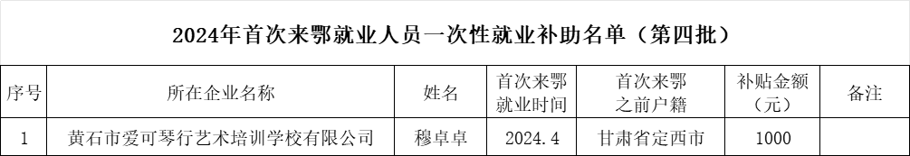 2024年首次来鄂就业人员一次性就业补助名单(第四批)