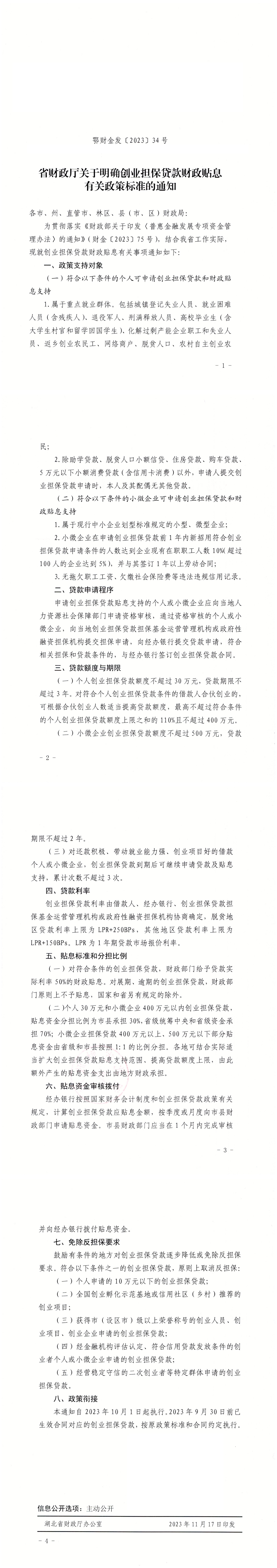 省财政厅关于明确创业担保贷款财政贴息有关政策标准的通知