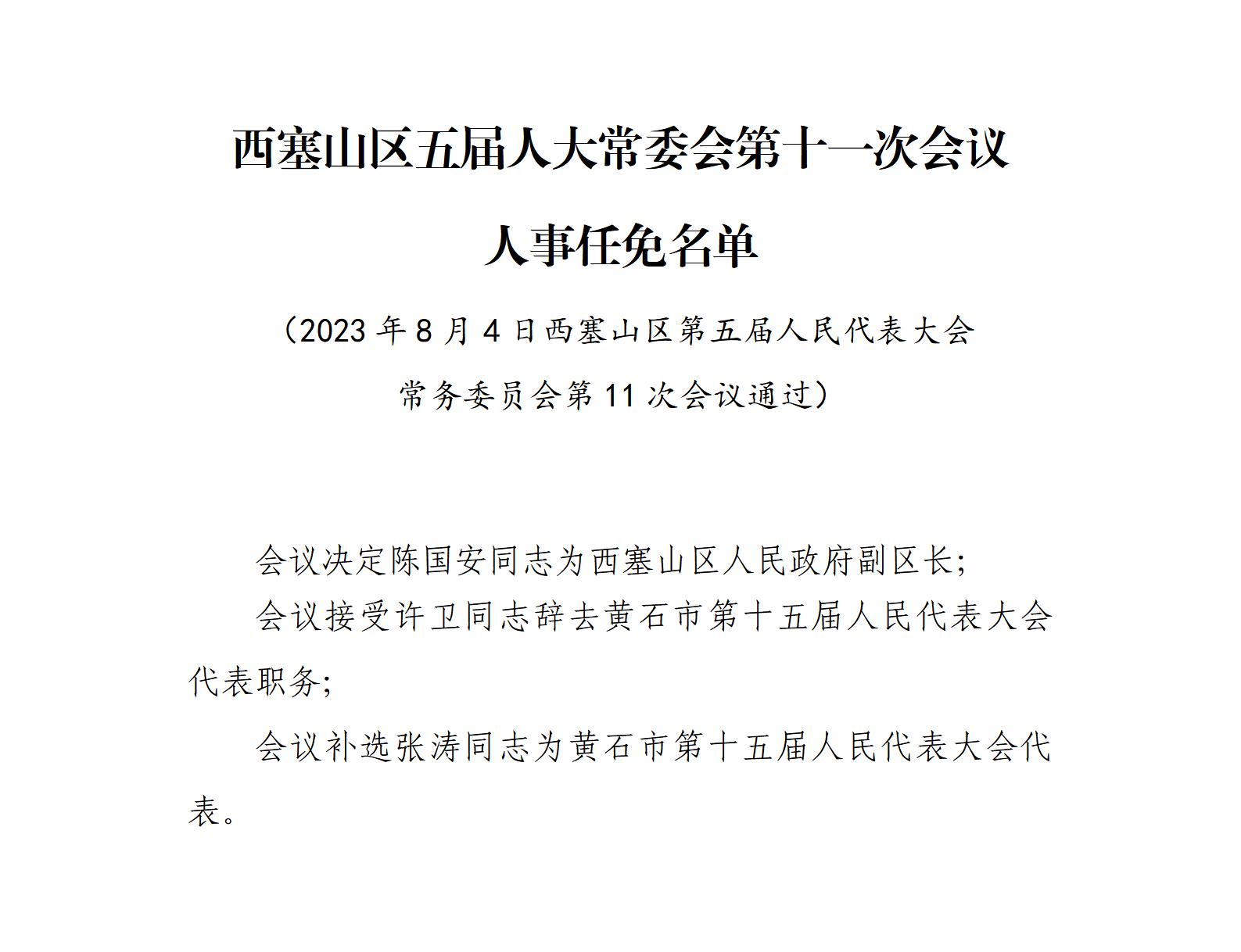 西塞山区五届人大常委会第十一次会议人事任免名单