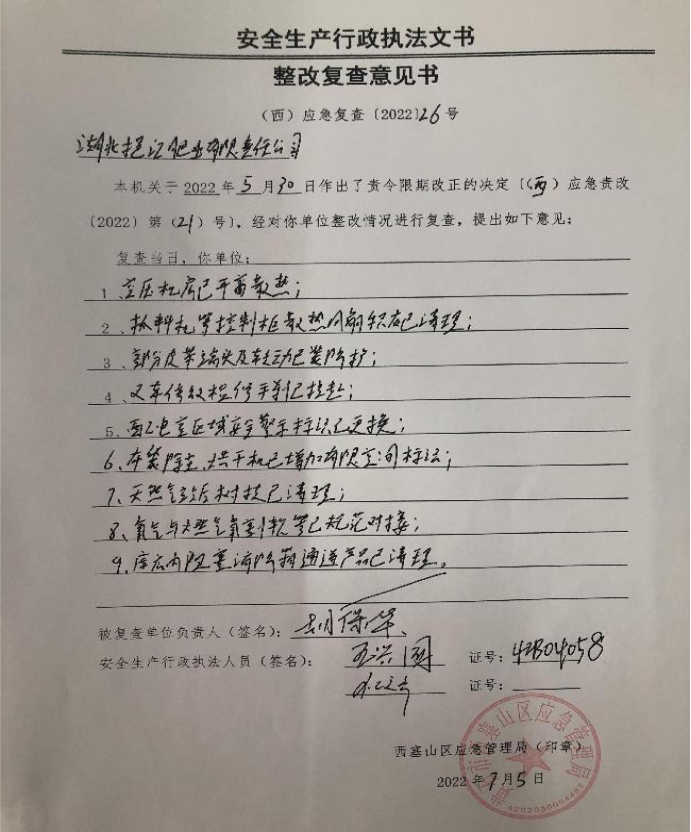 西塞山区应急管理局危化科2022年二季度“双随机、一公开”专项执法检查结果公示