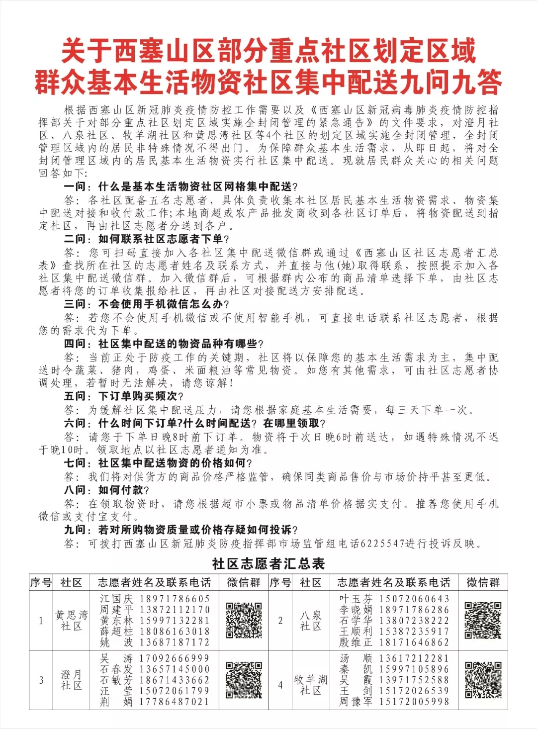 关于西塞山区部分重点社区划定区域群众基本生活物资社区集中配送九问九答