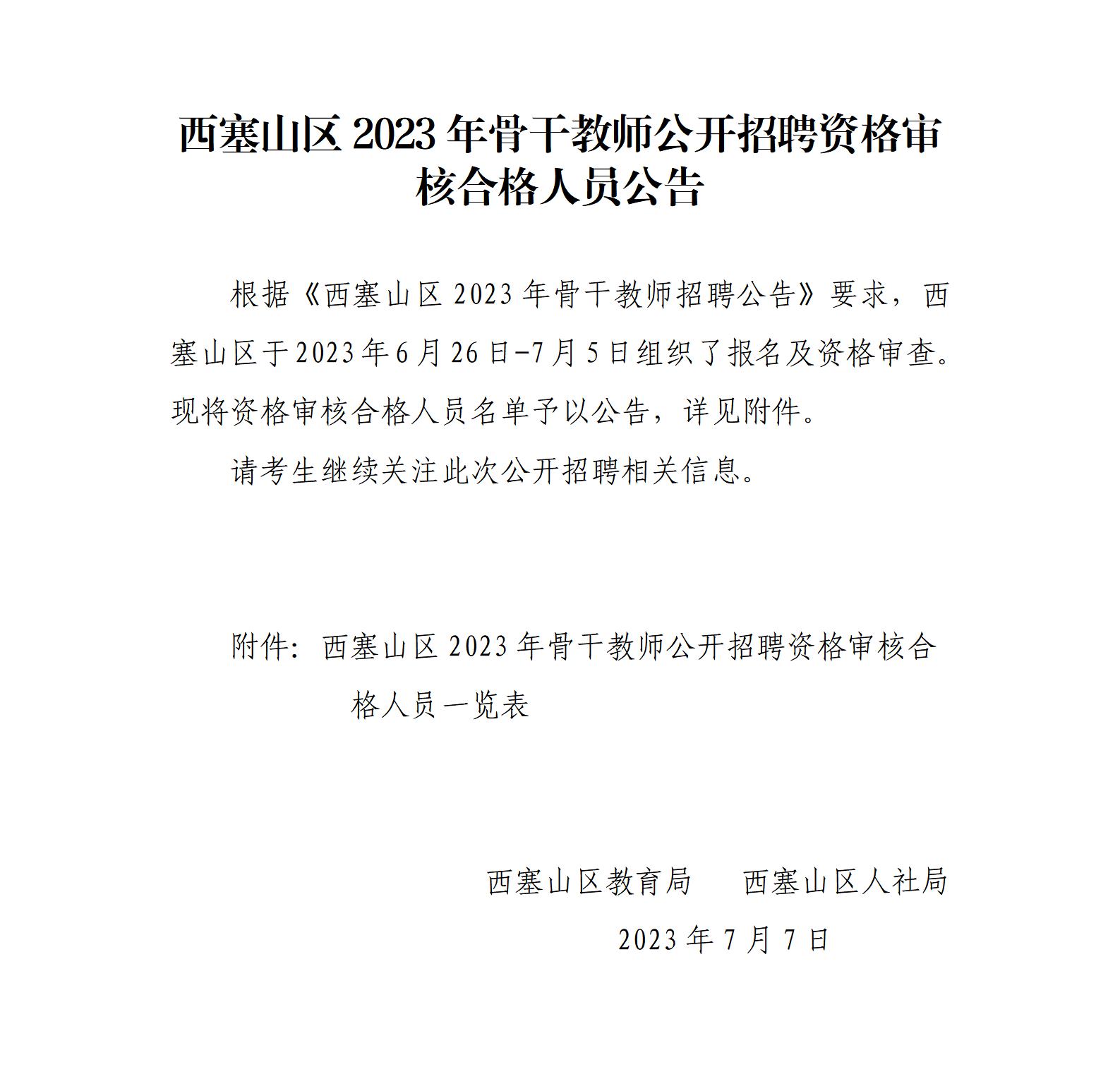 西塞山区2023年骨干教师公开招聘资格审核合格人员公告