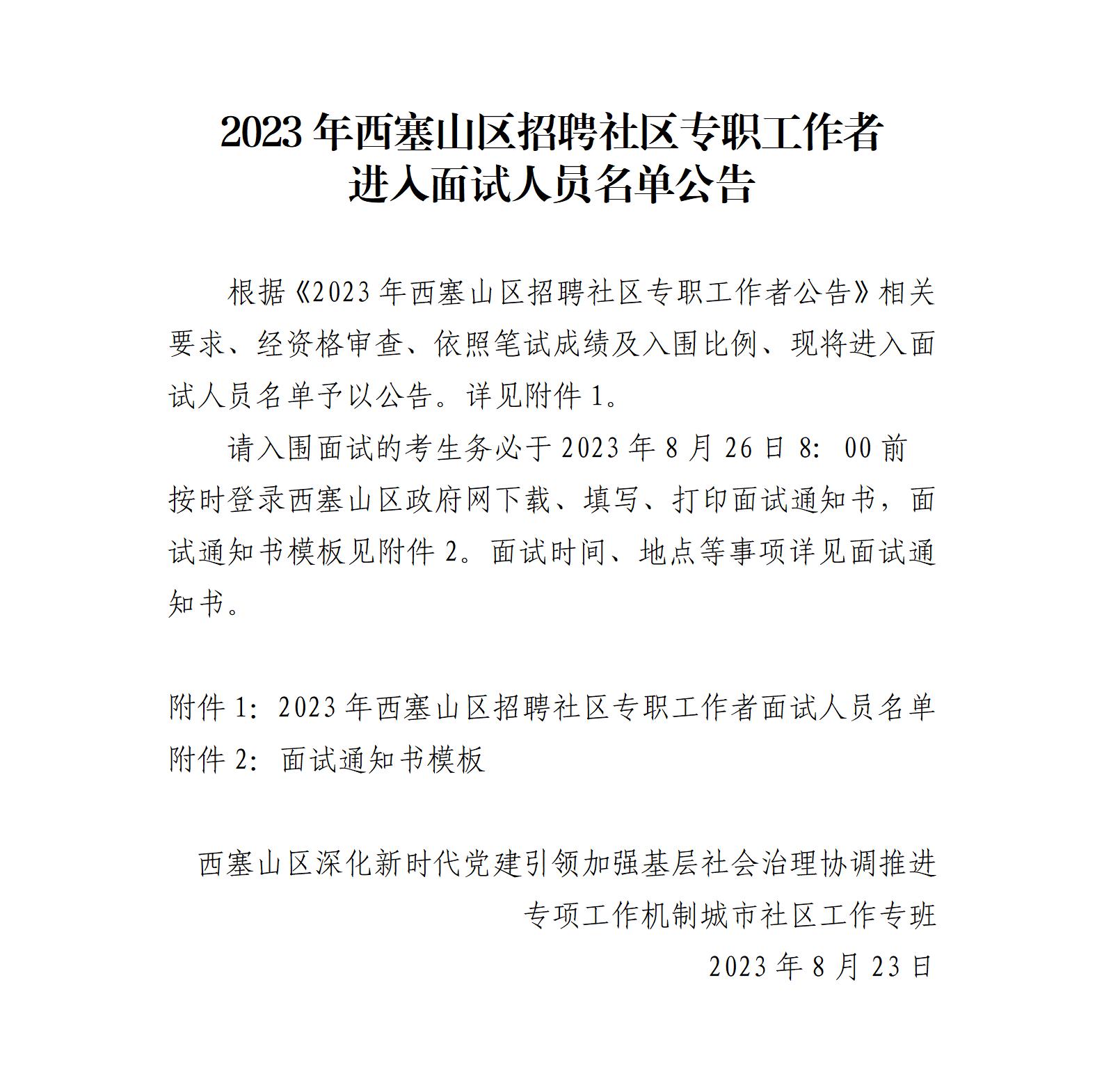 2023年西塞山区招聘社区专职工作者进入面试人员名单公告