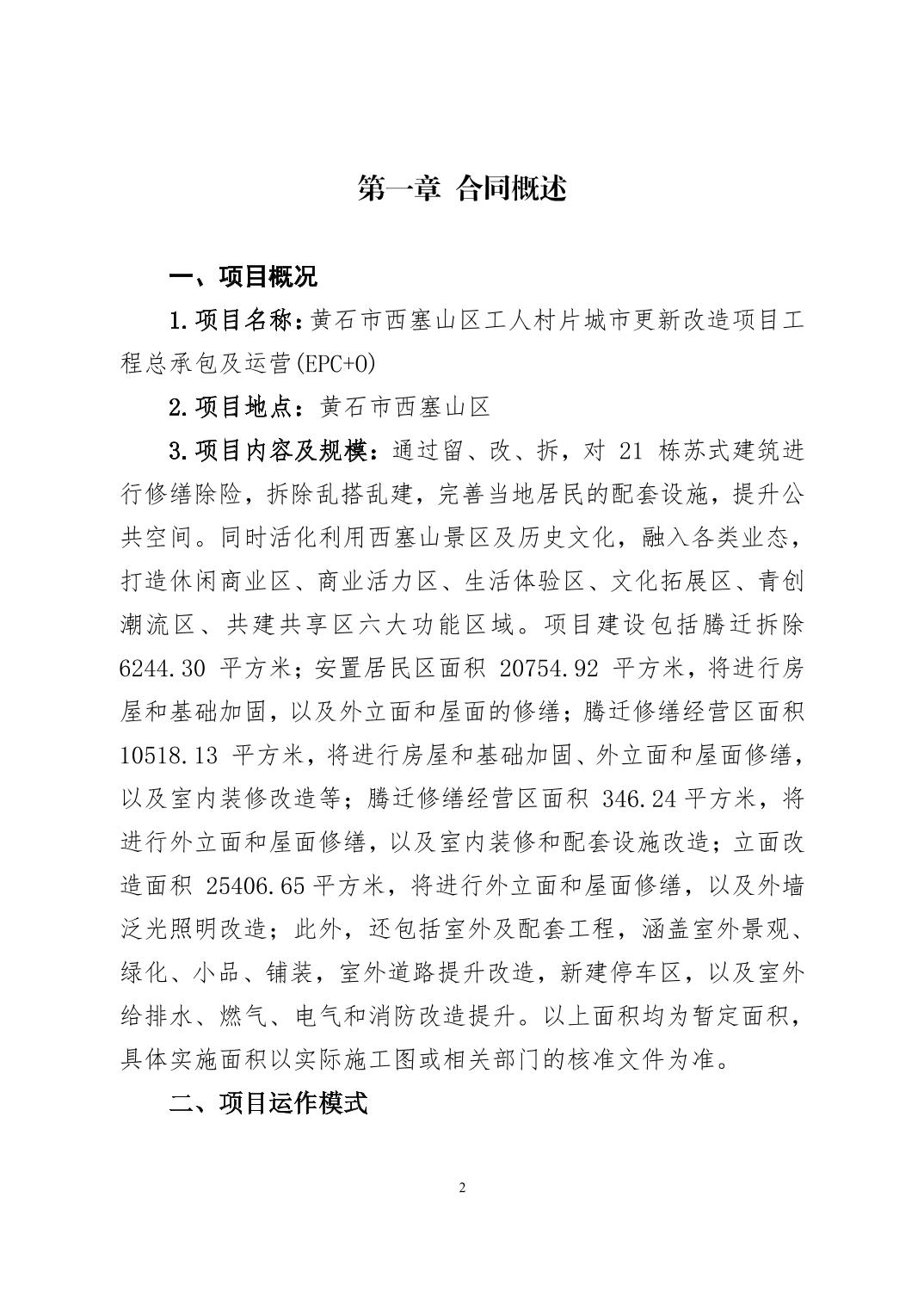 黄石市西塞山区工人村片城市更新改造项目 工程总承包及运营合同(EPC+O)