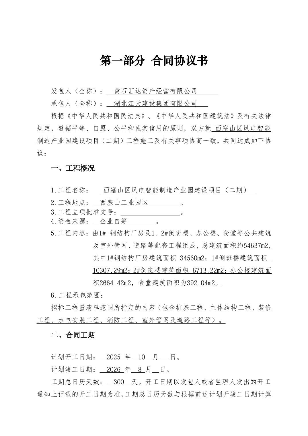 西塞山区风电智能制造产业园建设项目(二期) 施工合同