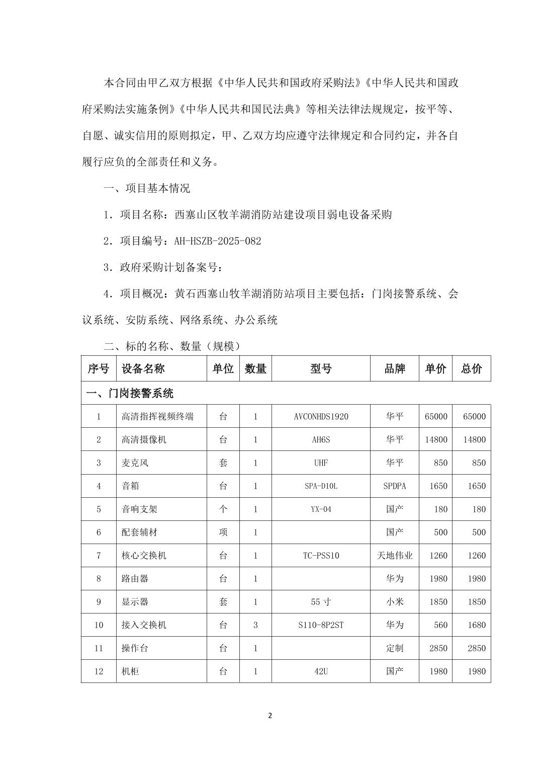 西塞山区牧羊湖消防站建设项目弱电设备采购