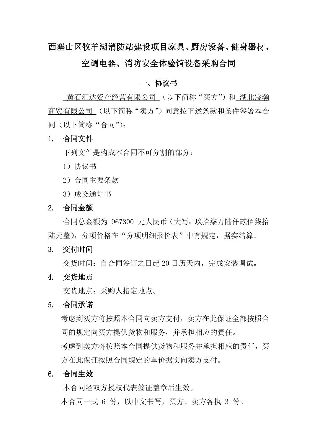 西塞山区牧羊湖消防站建设项目家具设备采购合同