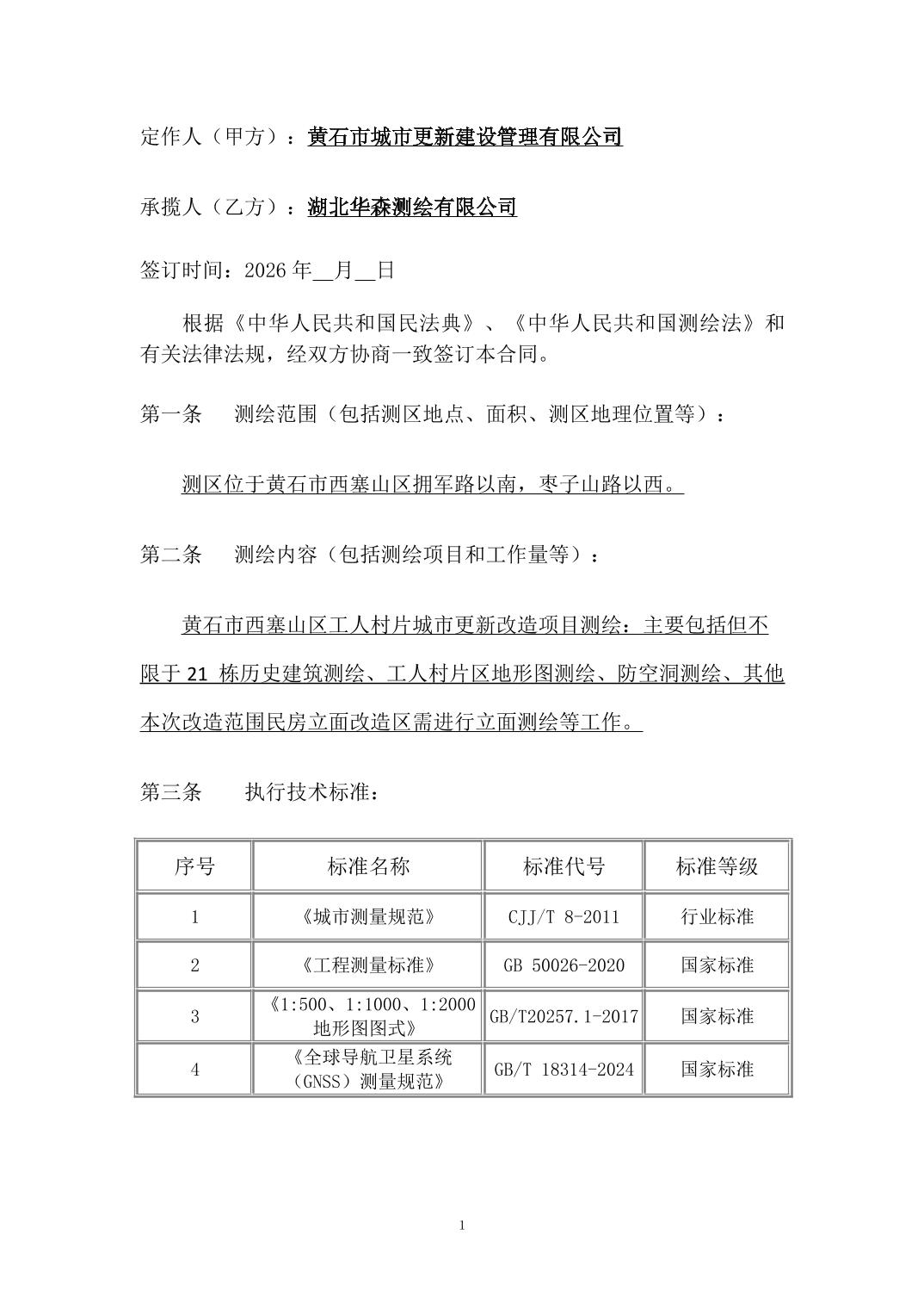 黄石市西塞山区工人村片城市更新改造项目测绘合同